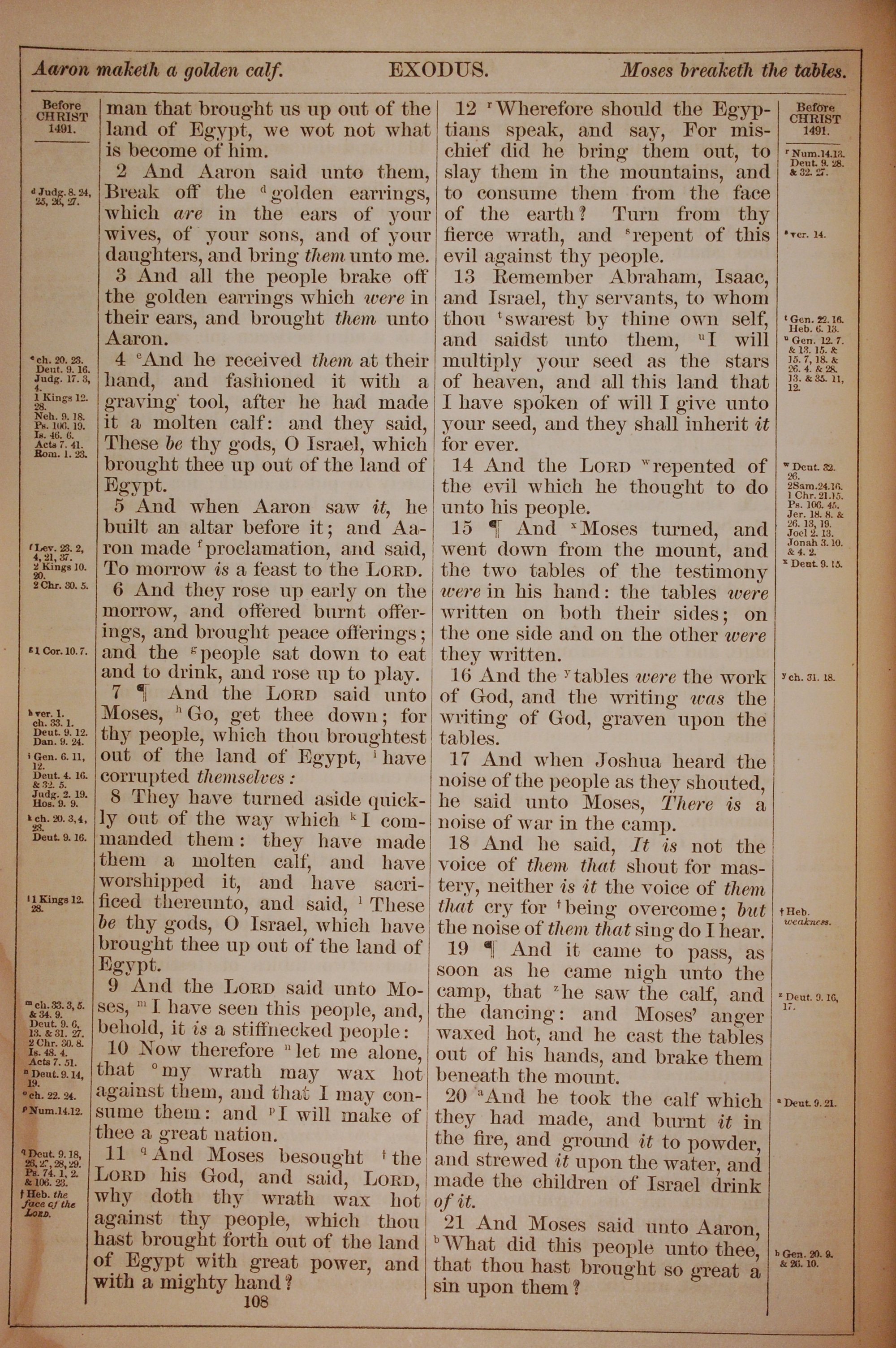 1882年Holy Bible 出埃及记 32 章 2 节到 32 章 21 节