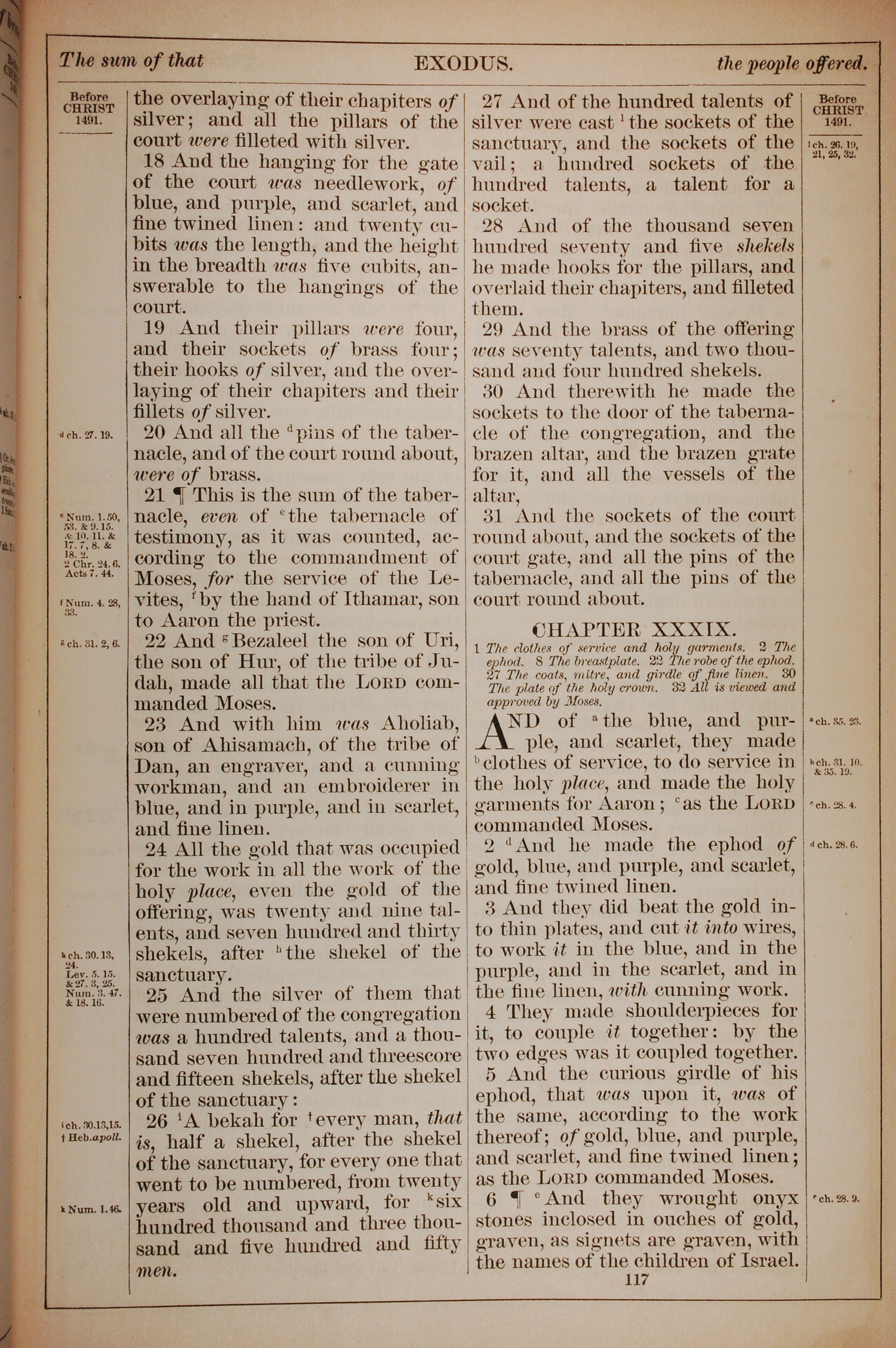 1882年Holy Bible 出埃及记 38 章 18 节到 39 章 6 节