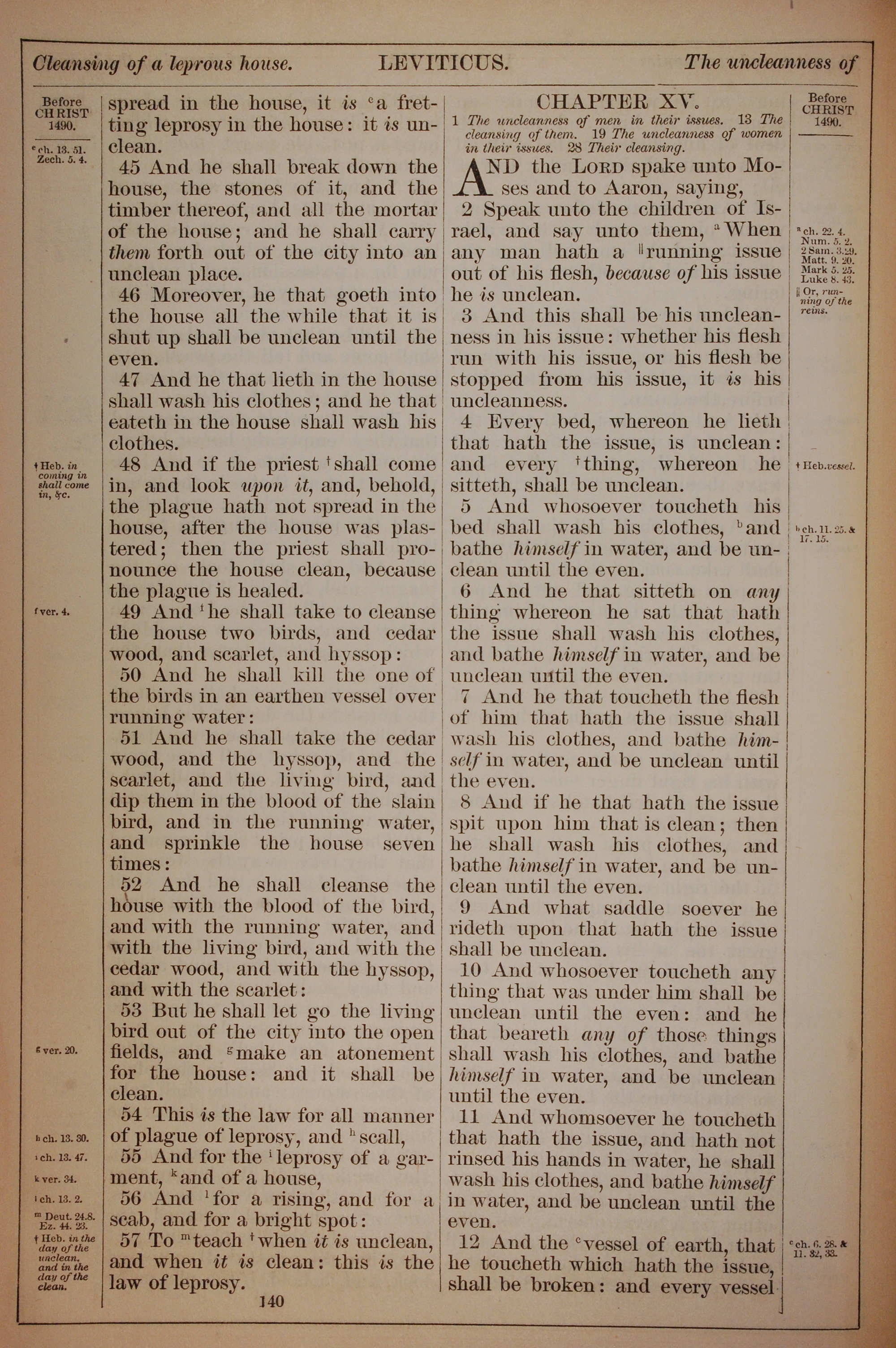 1882年Holy Bible 利未记 14 章 45 节到 15 章 12 节