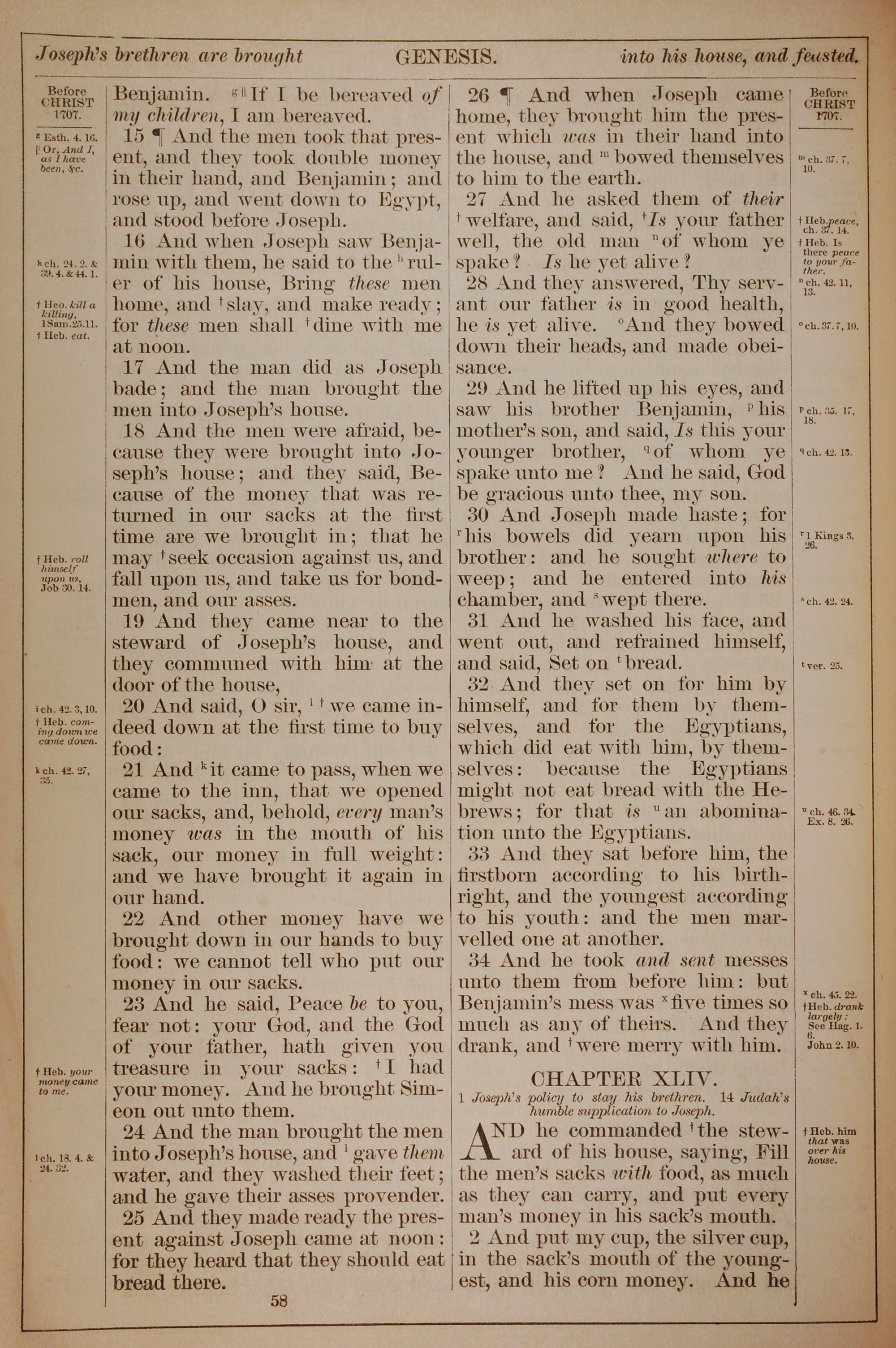1882年Holy Bible 创世记 43 章 15 节到 44 章 2 节