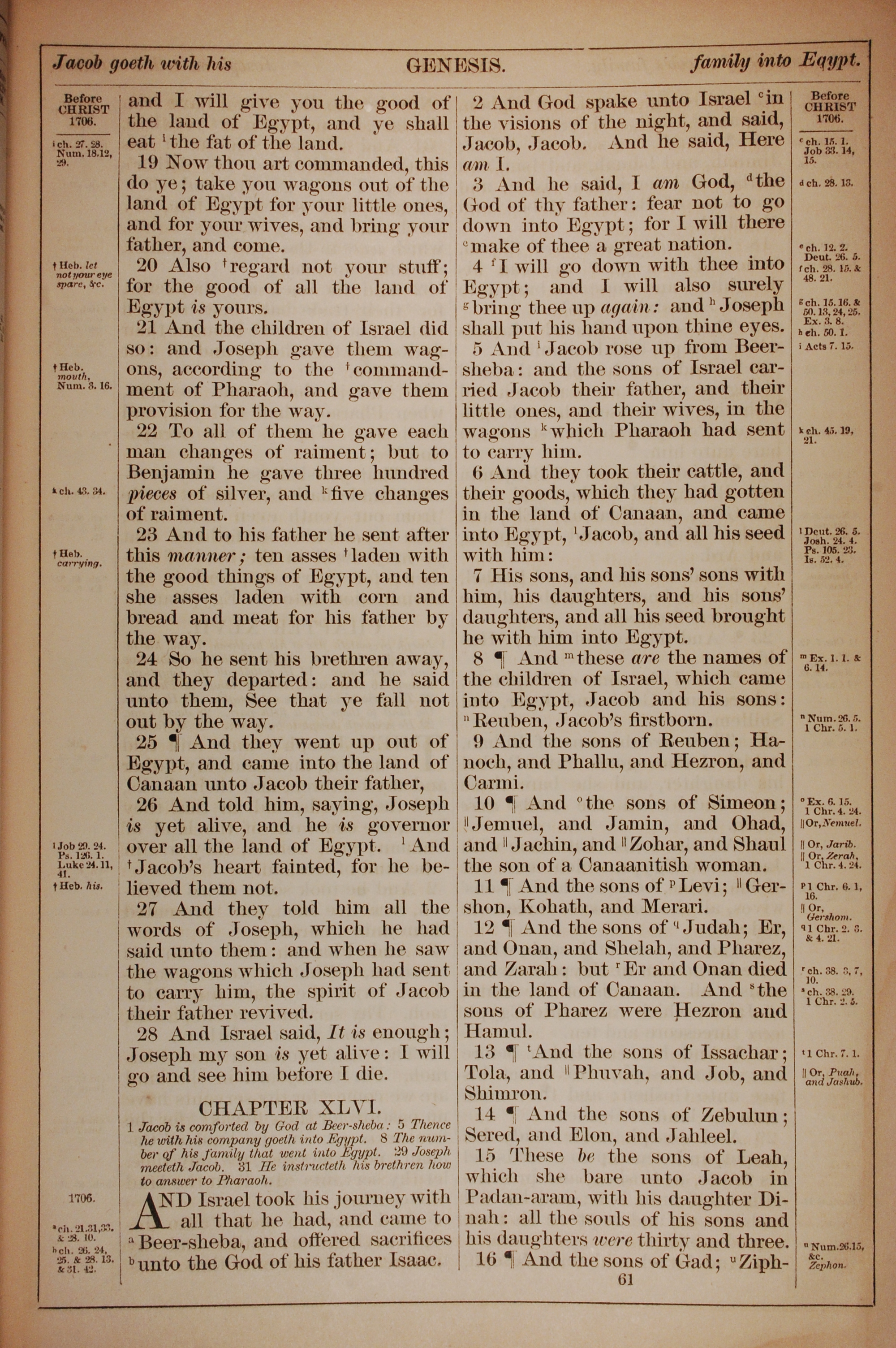 1882年Holy Bible 创世记 45 章 19 节到 46 章 16 节