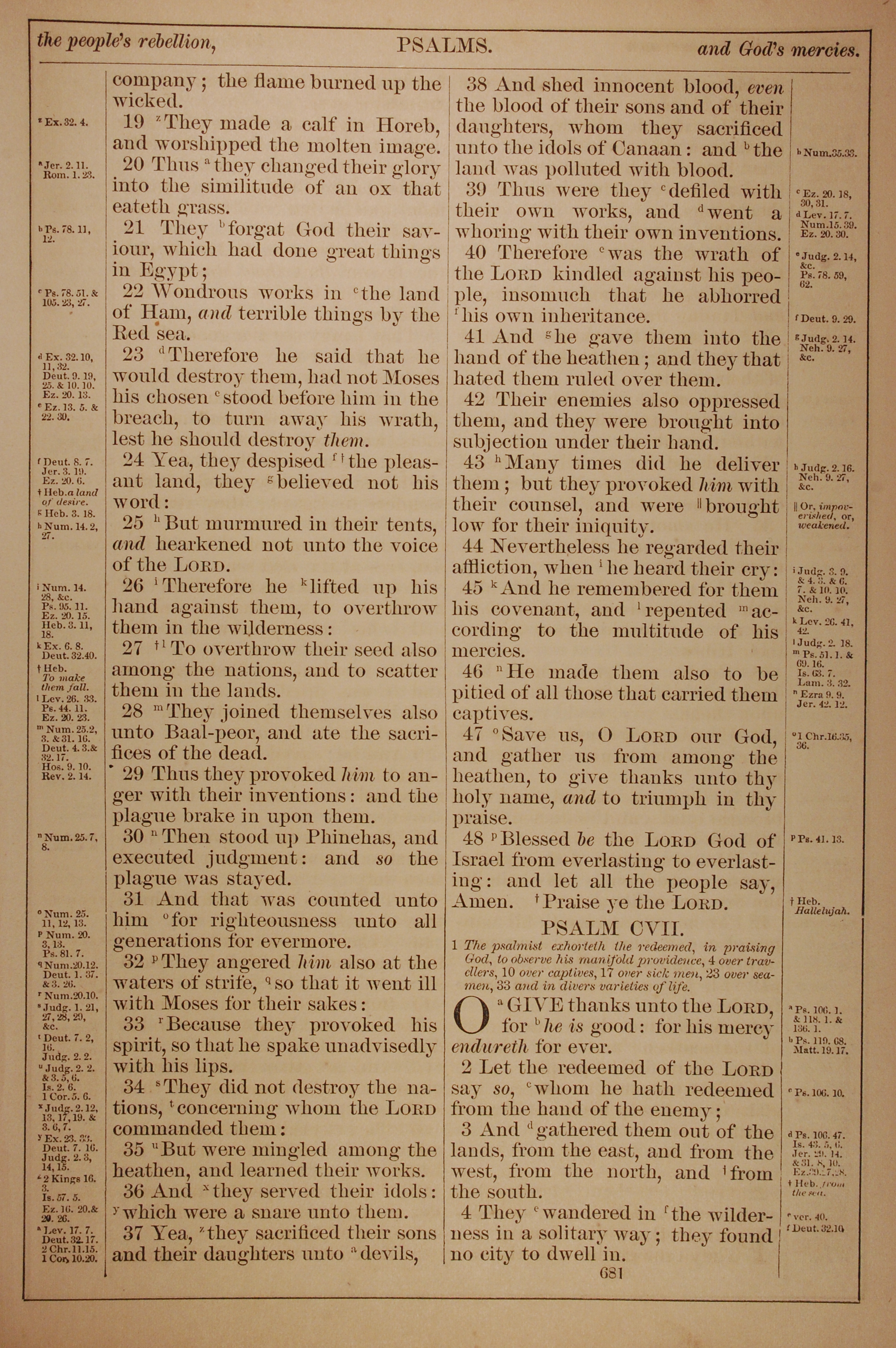 1882年Holy Bible 诗篇 106 章 19 节到 107 章 4 节