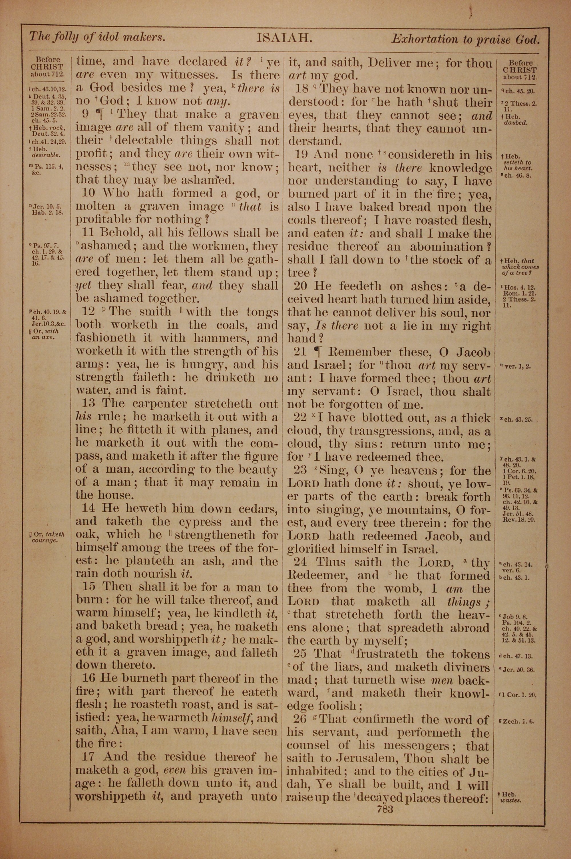 1882年Holy Bible 以赛亚书 44 章 9 节到 44 章 26 节