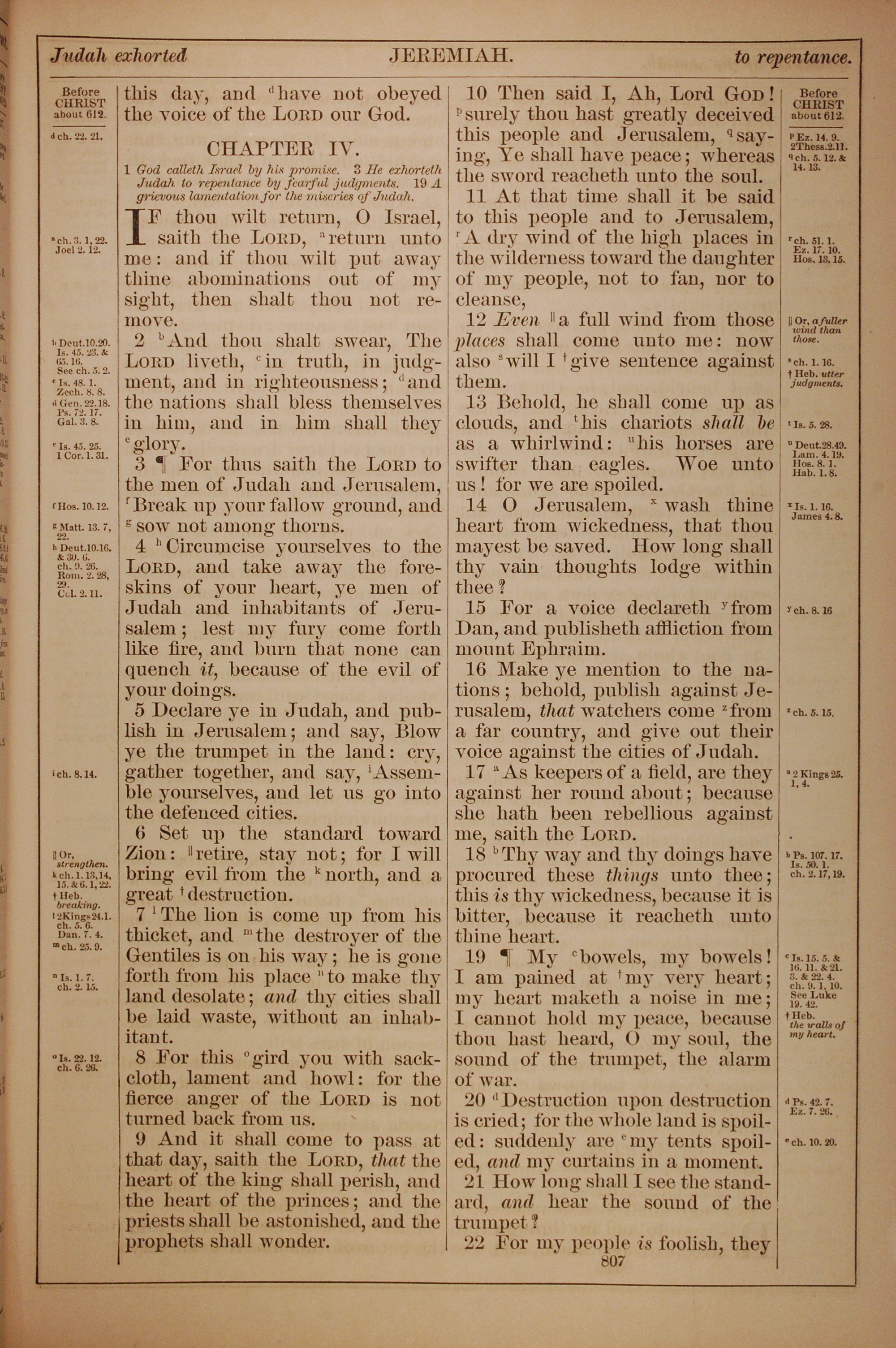 1882年Holy Bible 耶利米书 4 章 1 节到 4 章 22 节