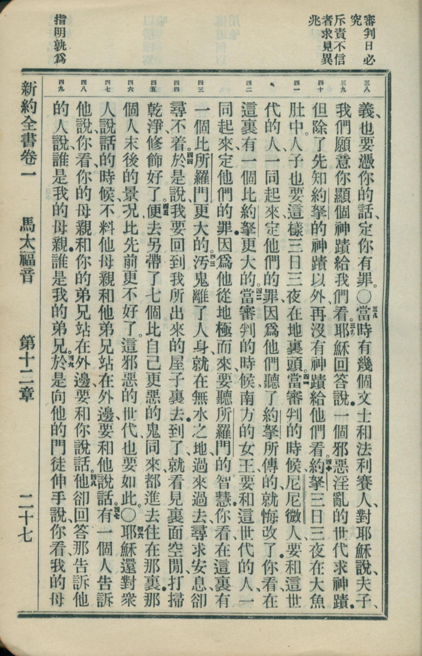 1908年新约全书(官话和合本) 马太福音 12 章 38 节到 12 章 49 节