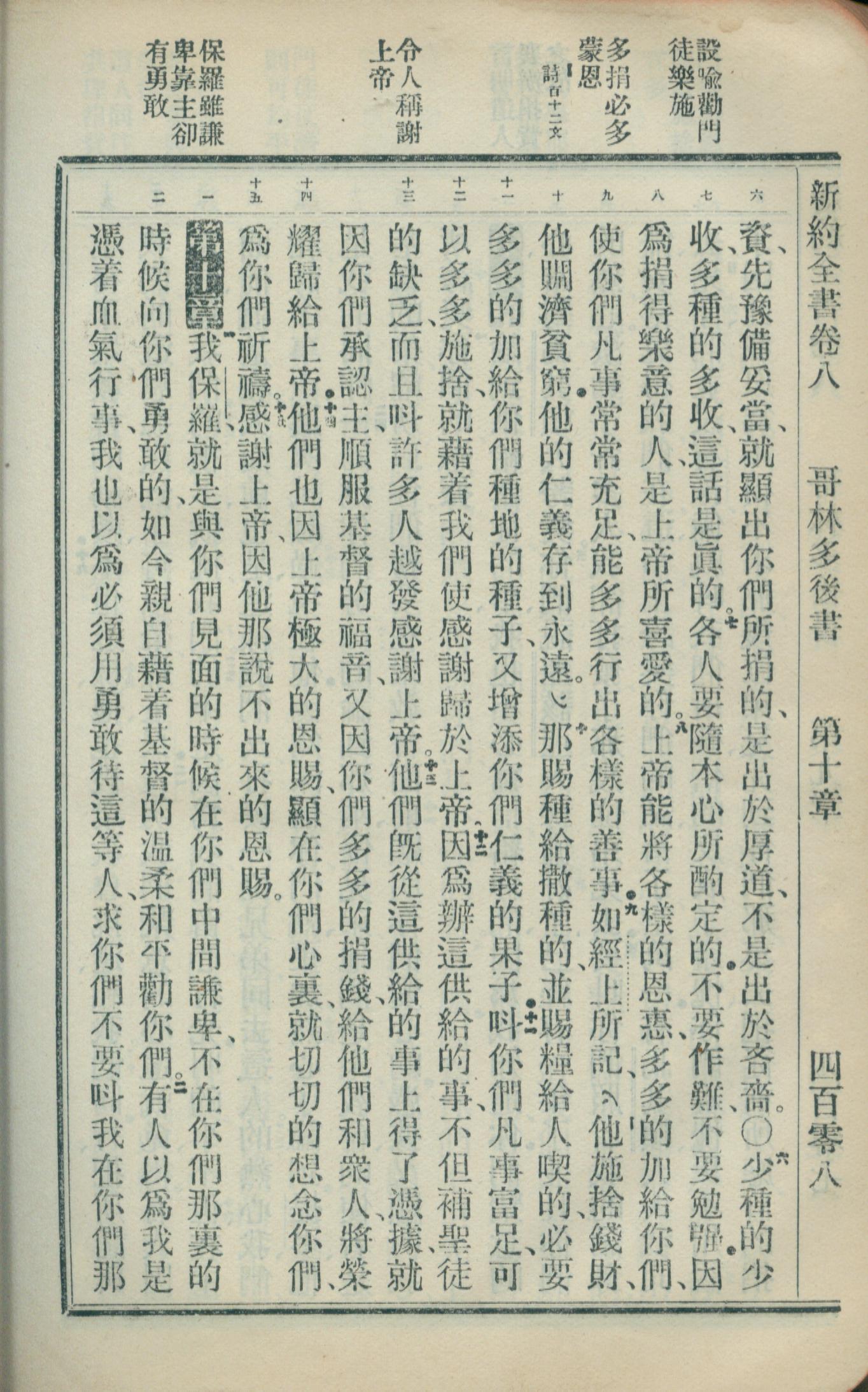 1908年新约全书(官话和合本) 哥林多后书 9 章 6 节到 10 章 2 节