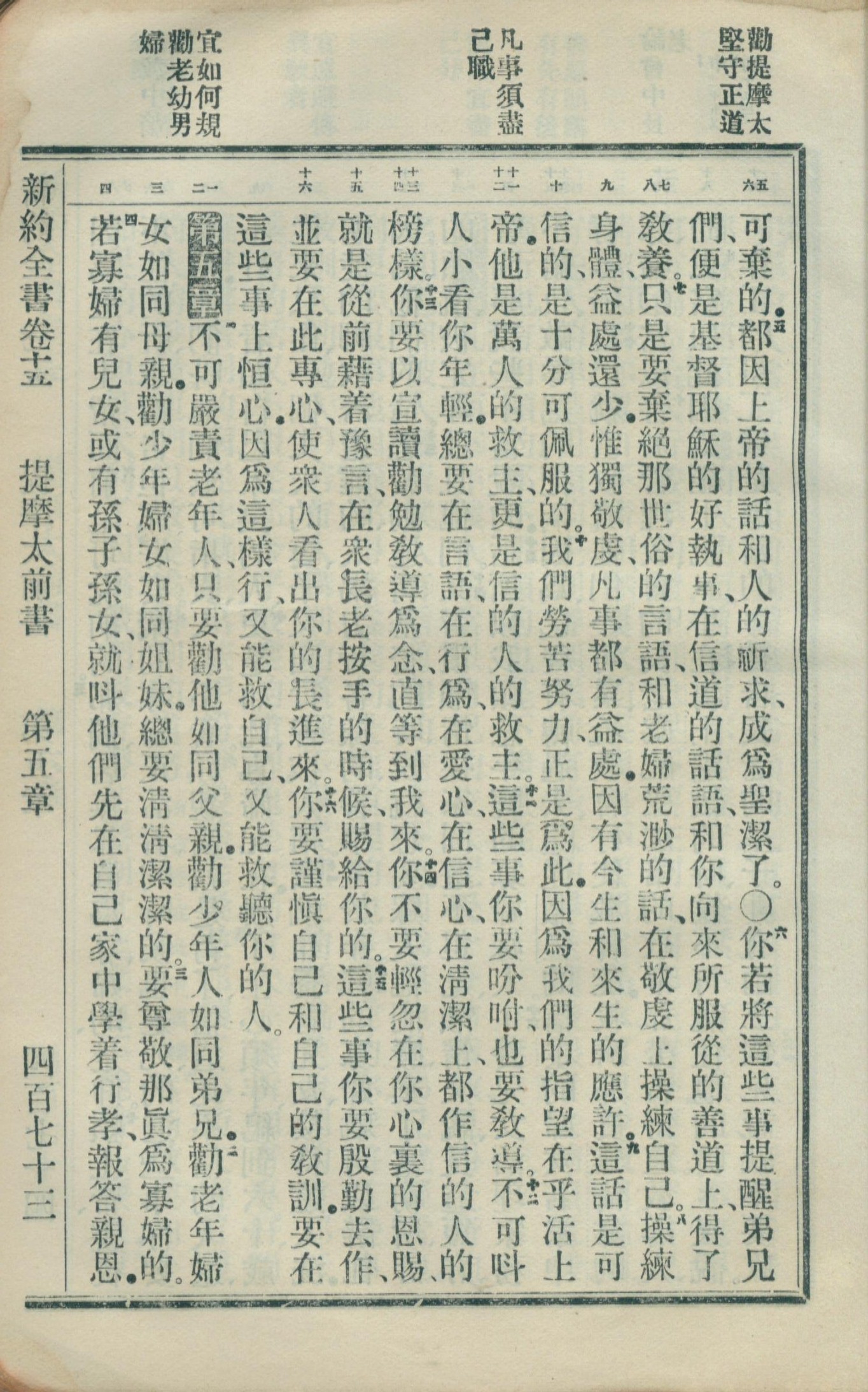 1908年新约全书(官话和合本) 提摩太前书 4 章 5 节到 5 章 4 节