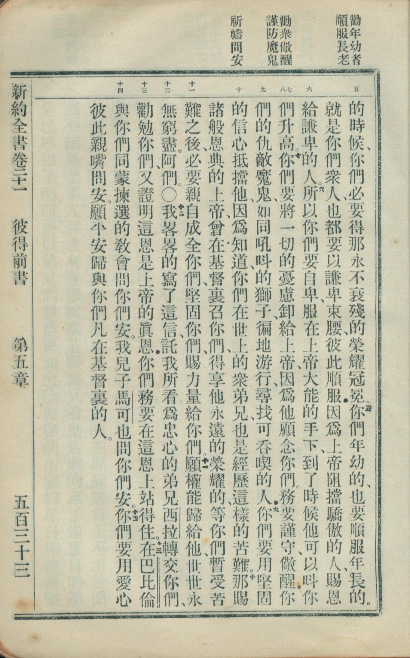 1908年新约全书(官话和合本) 彼得前书 5 章 5 节到 5 章 14 节