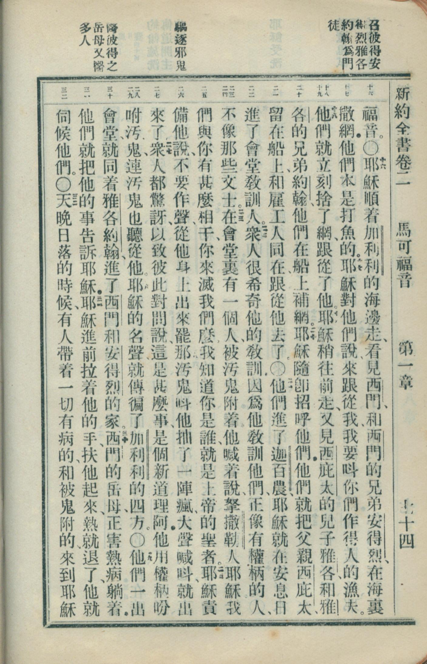 1908年新约全书(官话和合本) 马可福音 1 章 16 节到 1 章 32 节
