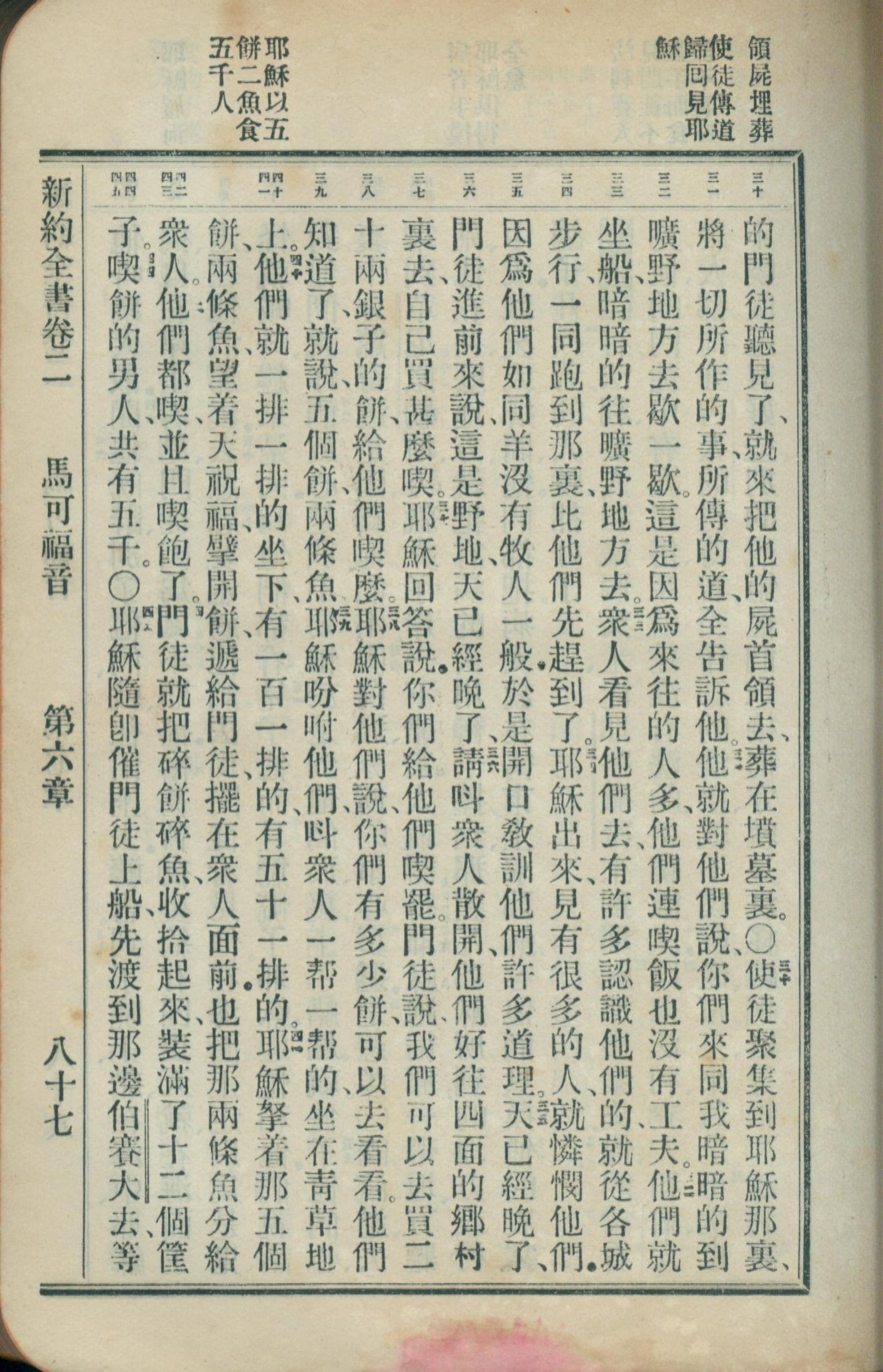 1908年新约全书(官话和合本) 马可福音 6 章 30 节到 6 章 45 节