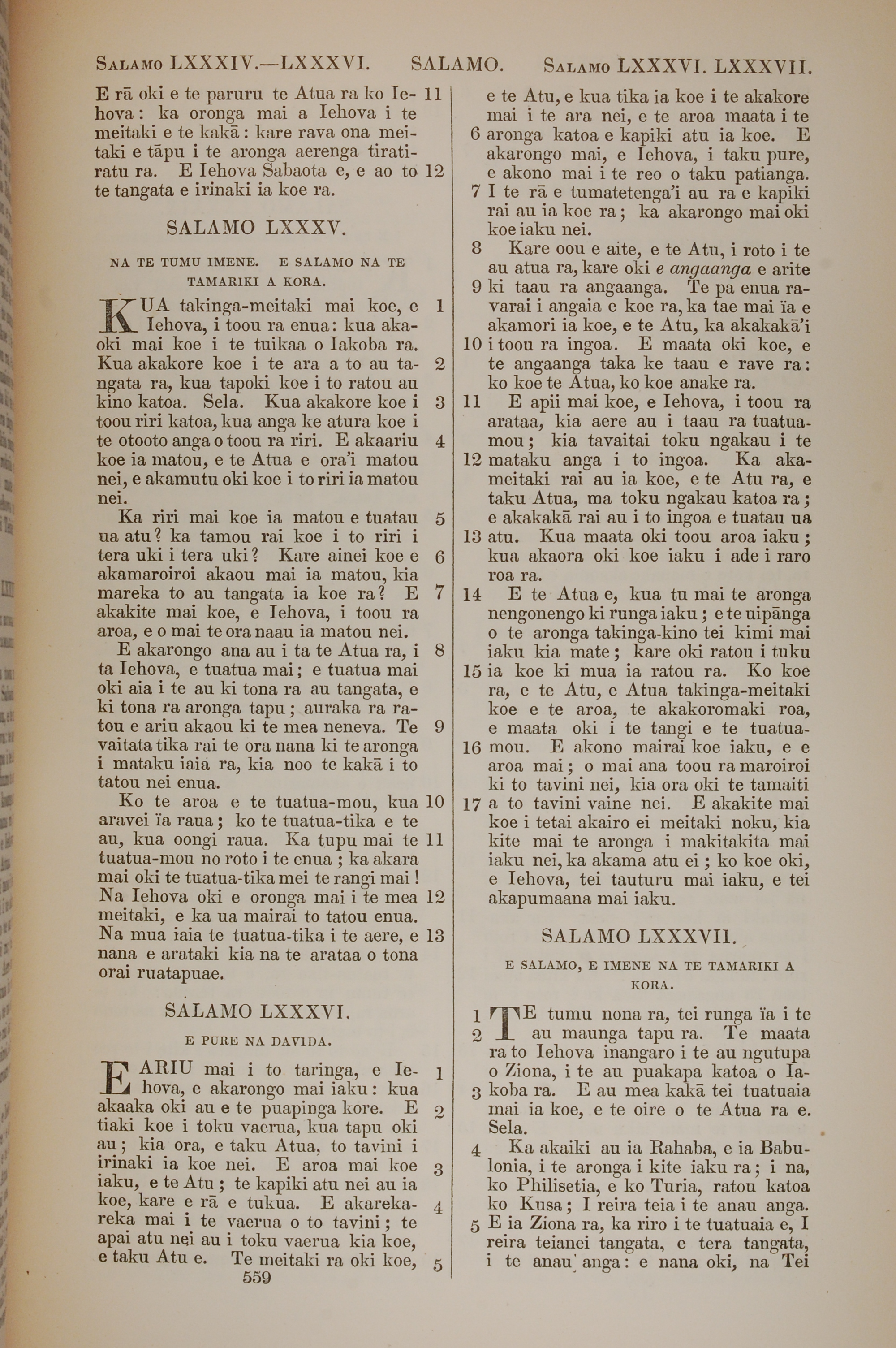 1851年BIBILA TAPU RA 诗篇 84 章 11 节到 87 章 5 节