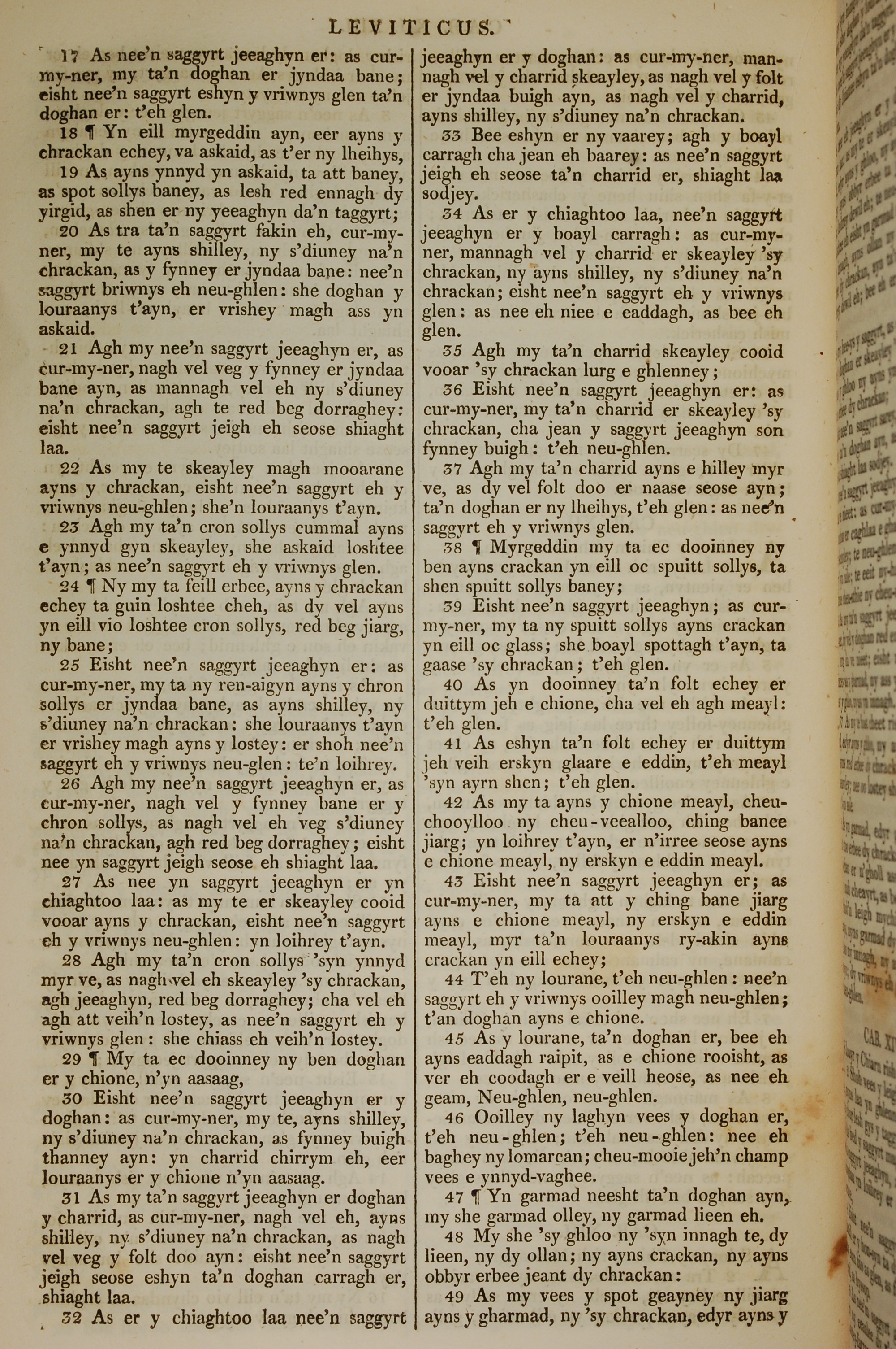 1819年曼岛语圣经 利未记 13 章 17 节到 13 章 49 节