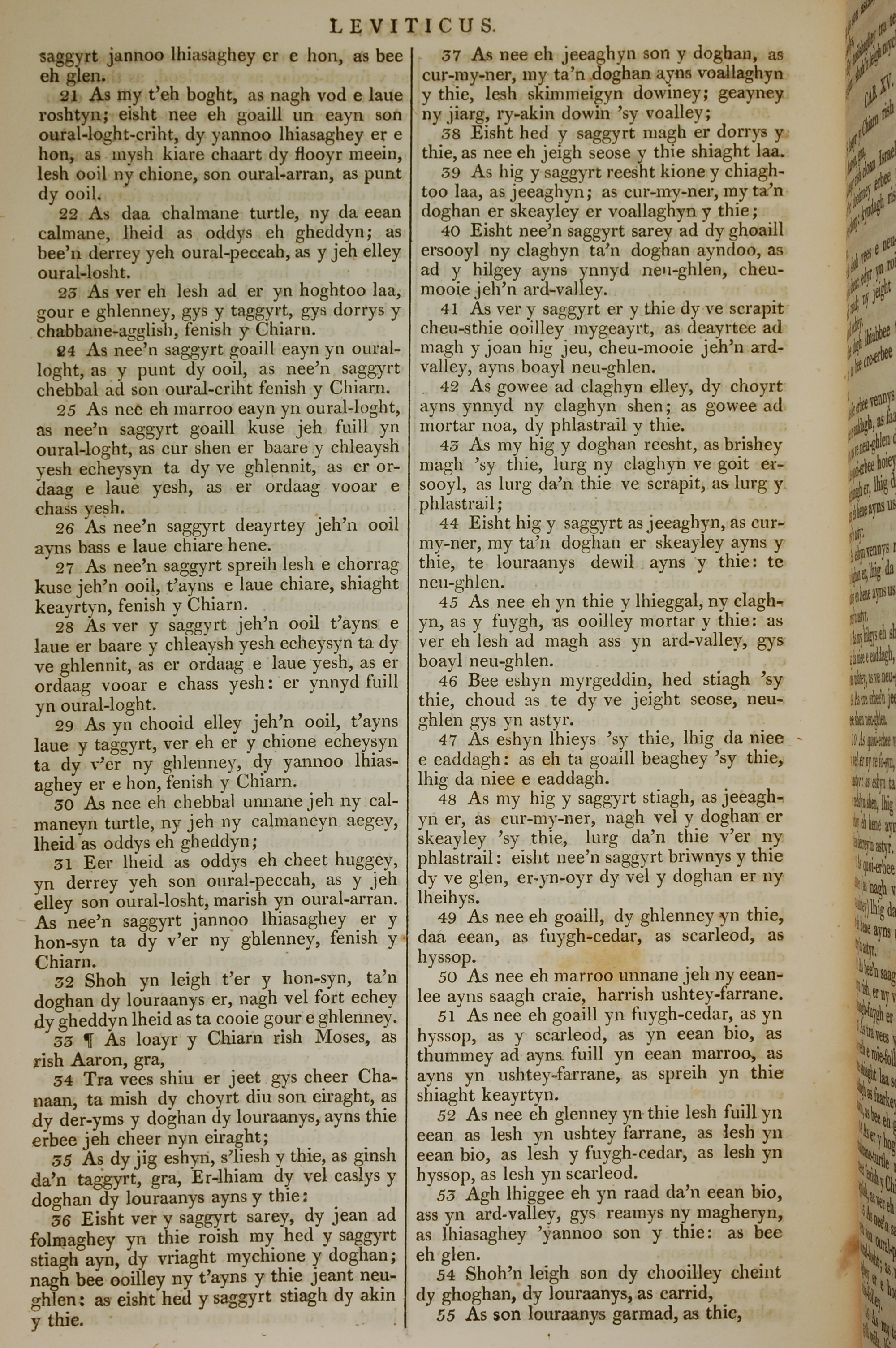 1819年曼岛语圣经 利未记 14 章 21 节到 14 章 55 节
