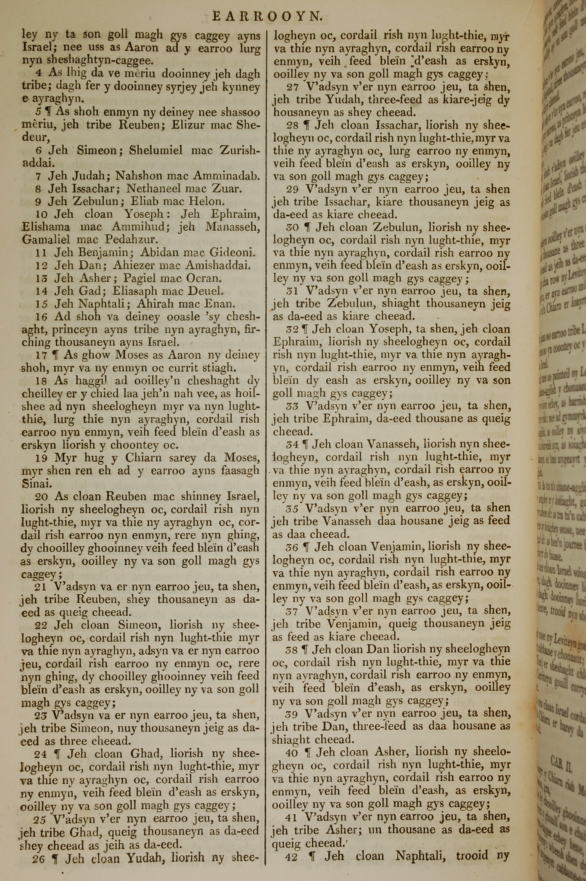 1819年曼岛语圣经 民数记 1 章 4 节到 1 章 42 节