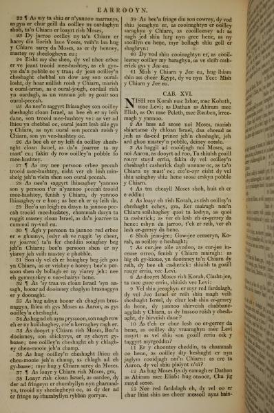 1819年曼岛语圣经 民数记 15 章 22 节到 16 章 13 节