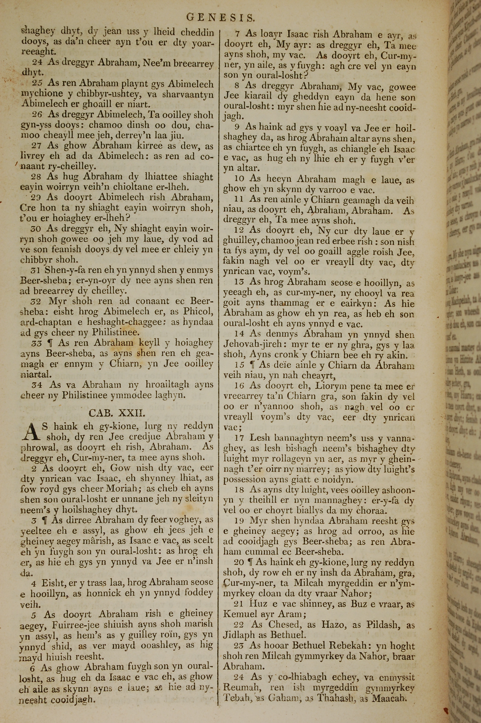 1819年曼岛语圣经 创世记 21 章 24 节到 22 章 24 节