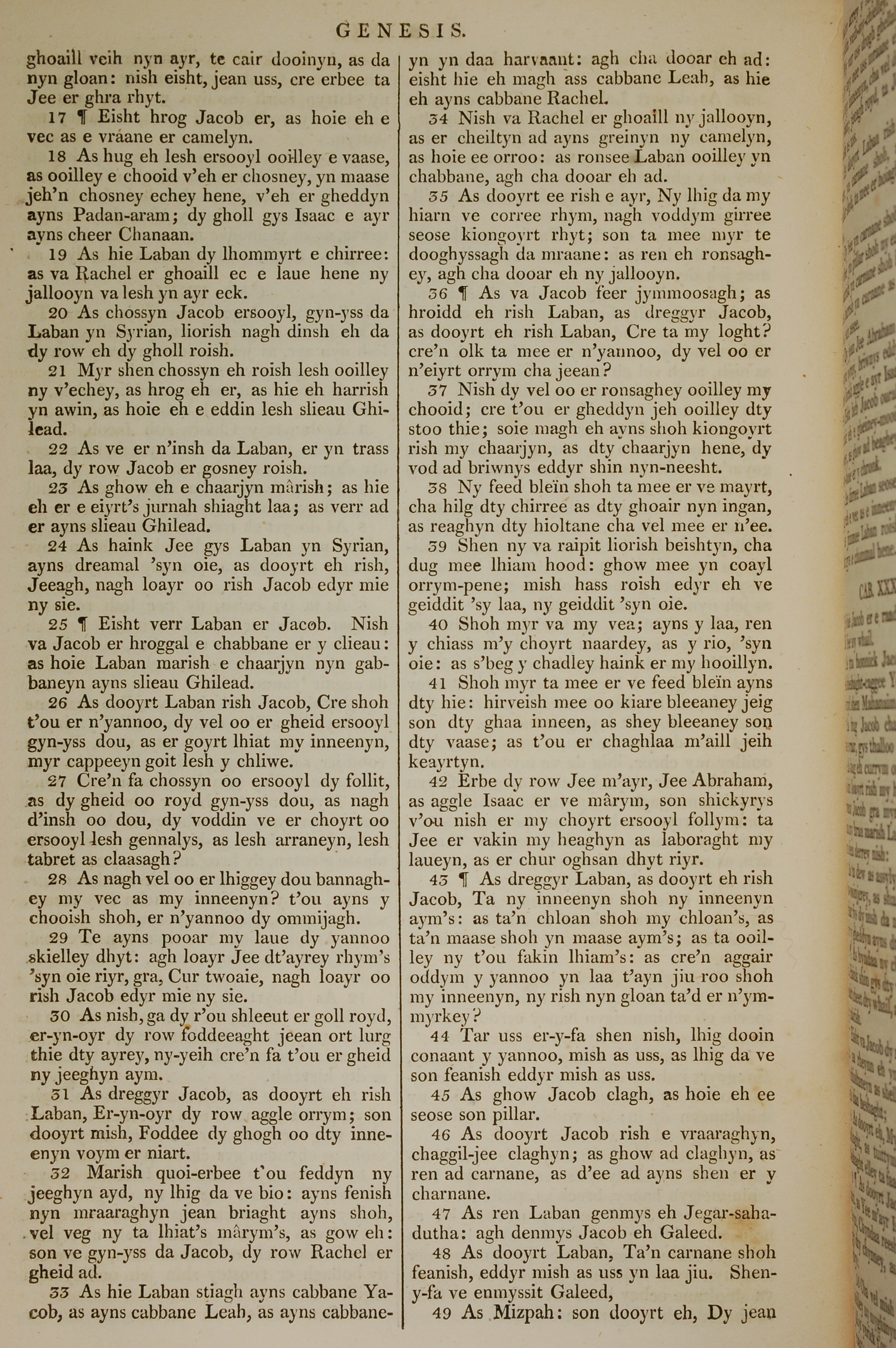1819年曼岛语圣经 创世记 31 章 17 节到 31 章 49 节