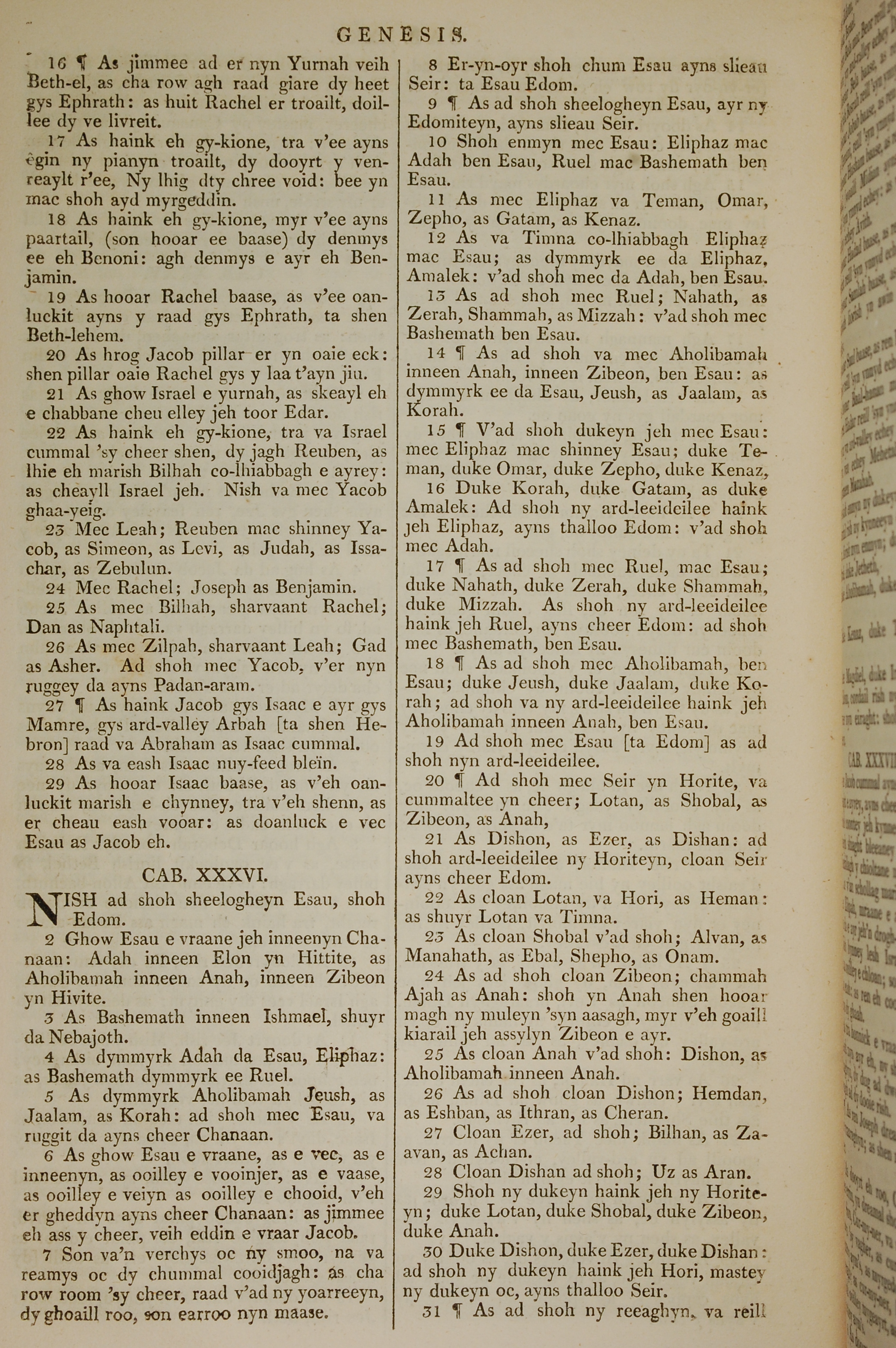 1819年曼岛语圣经 创世记 35 章 16 节到 36 章 31 节