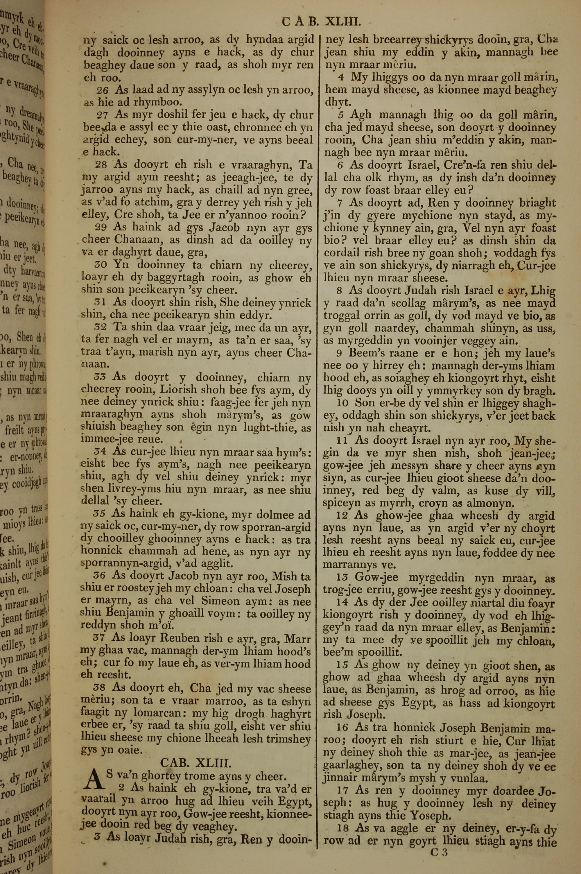 1819年曼岛语圣经 创世记 42 章 26 节到 43 章 18 节