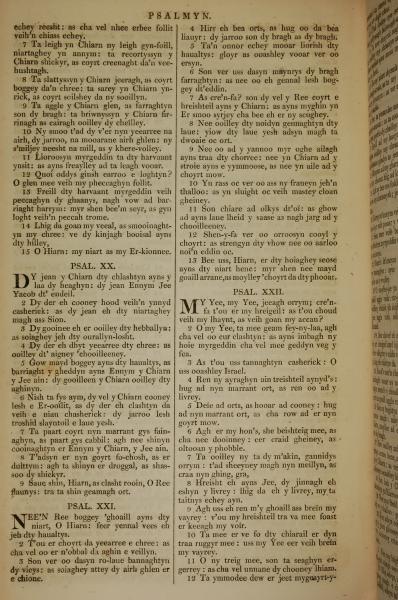 1819年曼岛语圣经 诗篇 19 章 7 节到 22 章 12 节