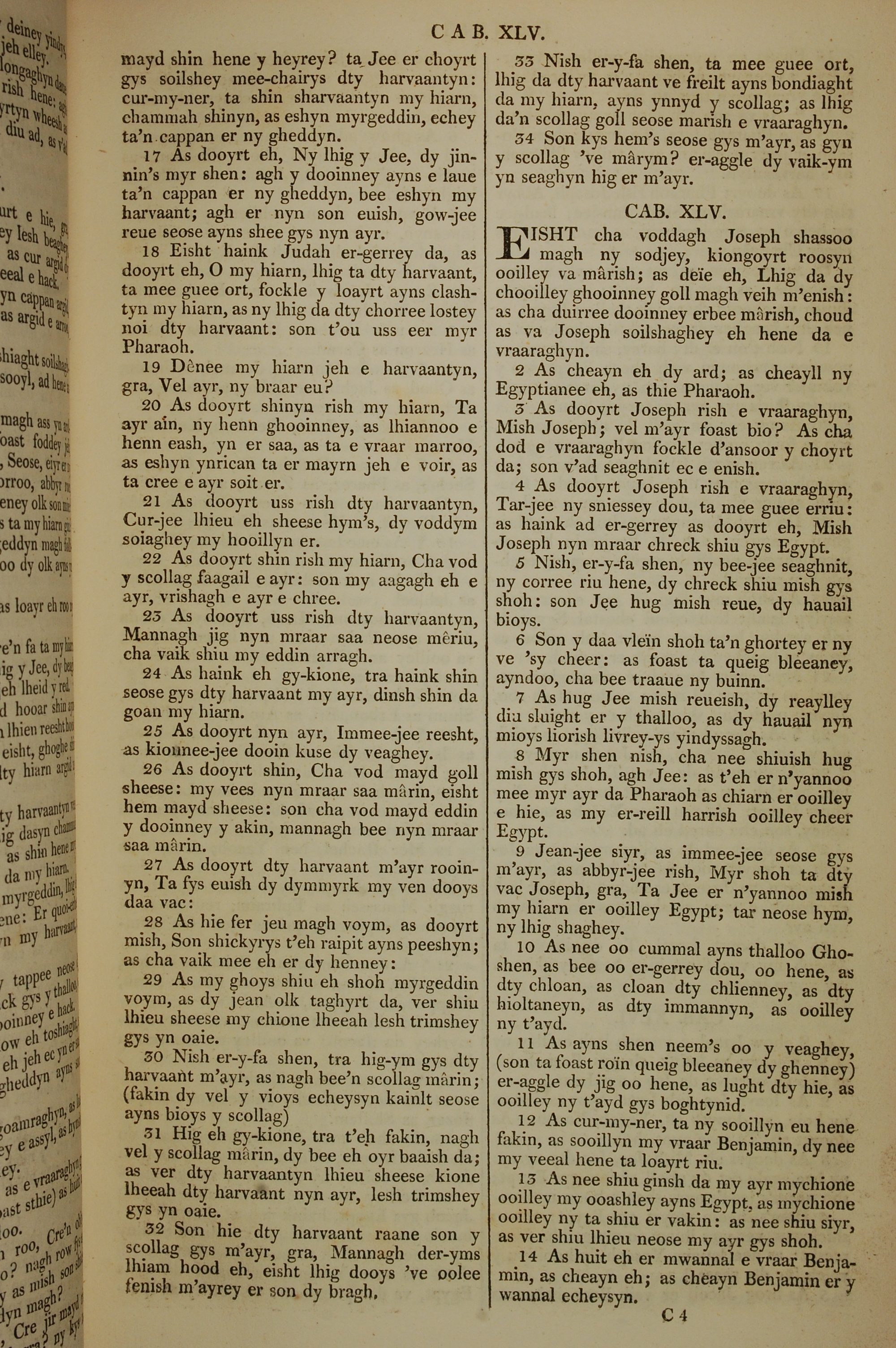1819年曼岛语圣经 创世记 44 章 17 节到 45 章 14 节
