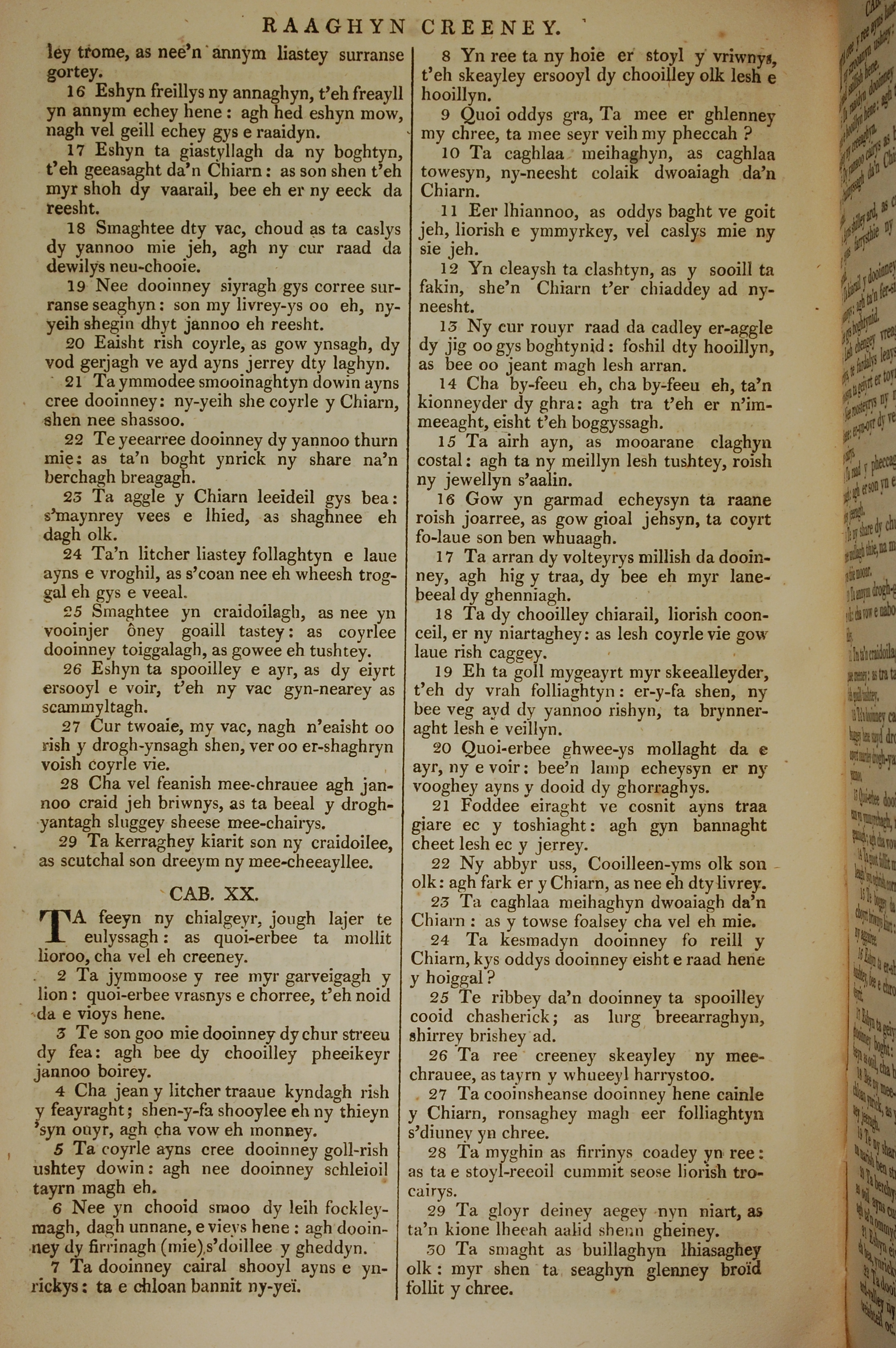1819年曼岛语圣经 箴言 19 章 16 节到 20 章 30 节