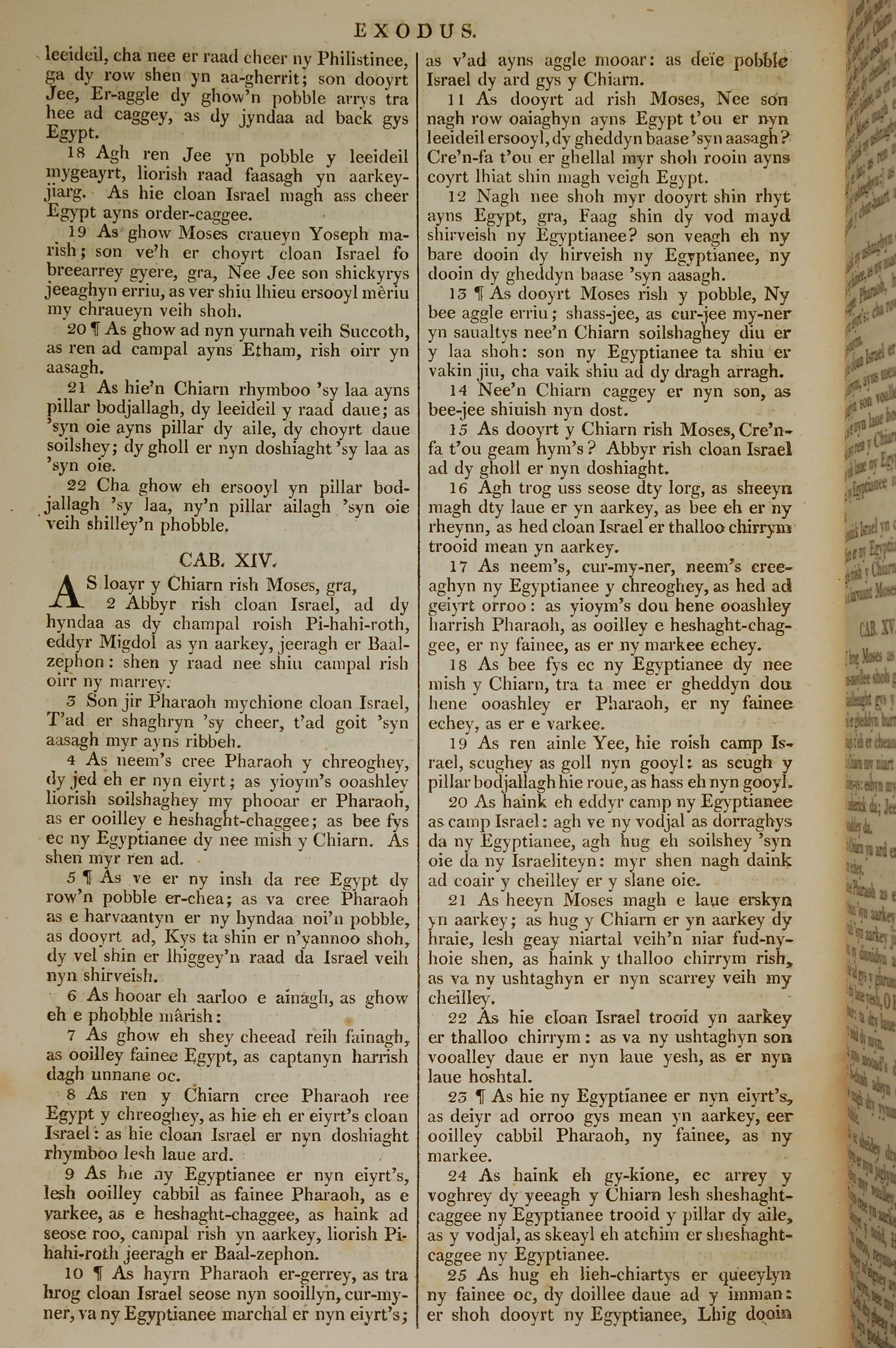 1819年曼岛语圣经 出埃及记 13 章 18 节到 14 章 25 节