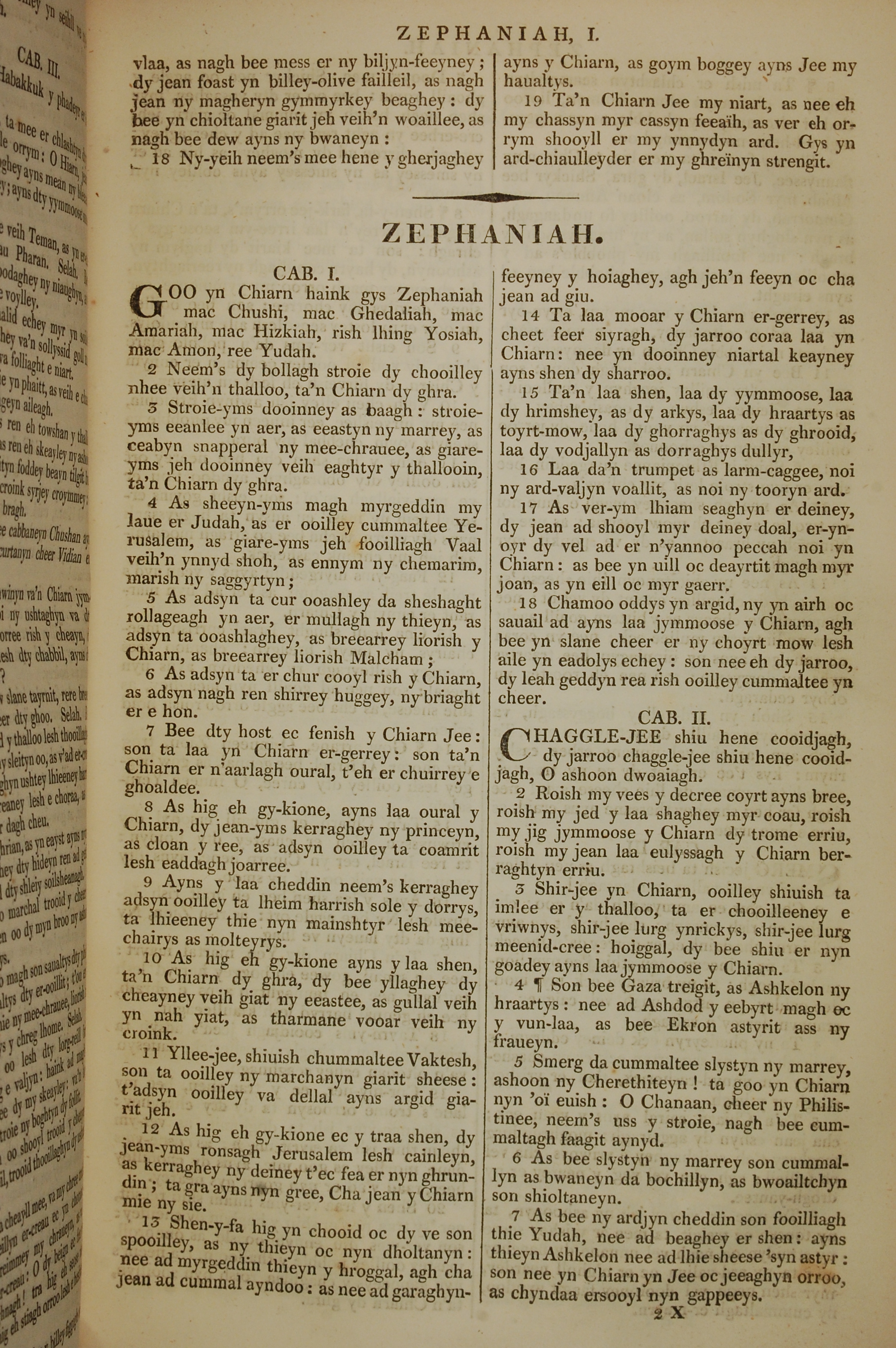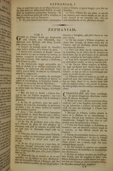 1819年曼岛语圣经 西番雅书 1 章 1 节到 2 章 7 节