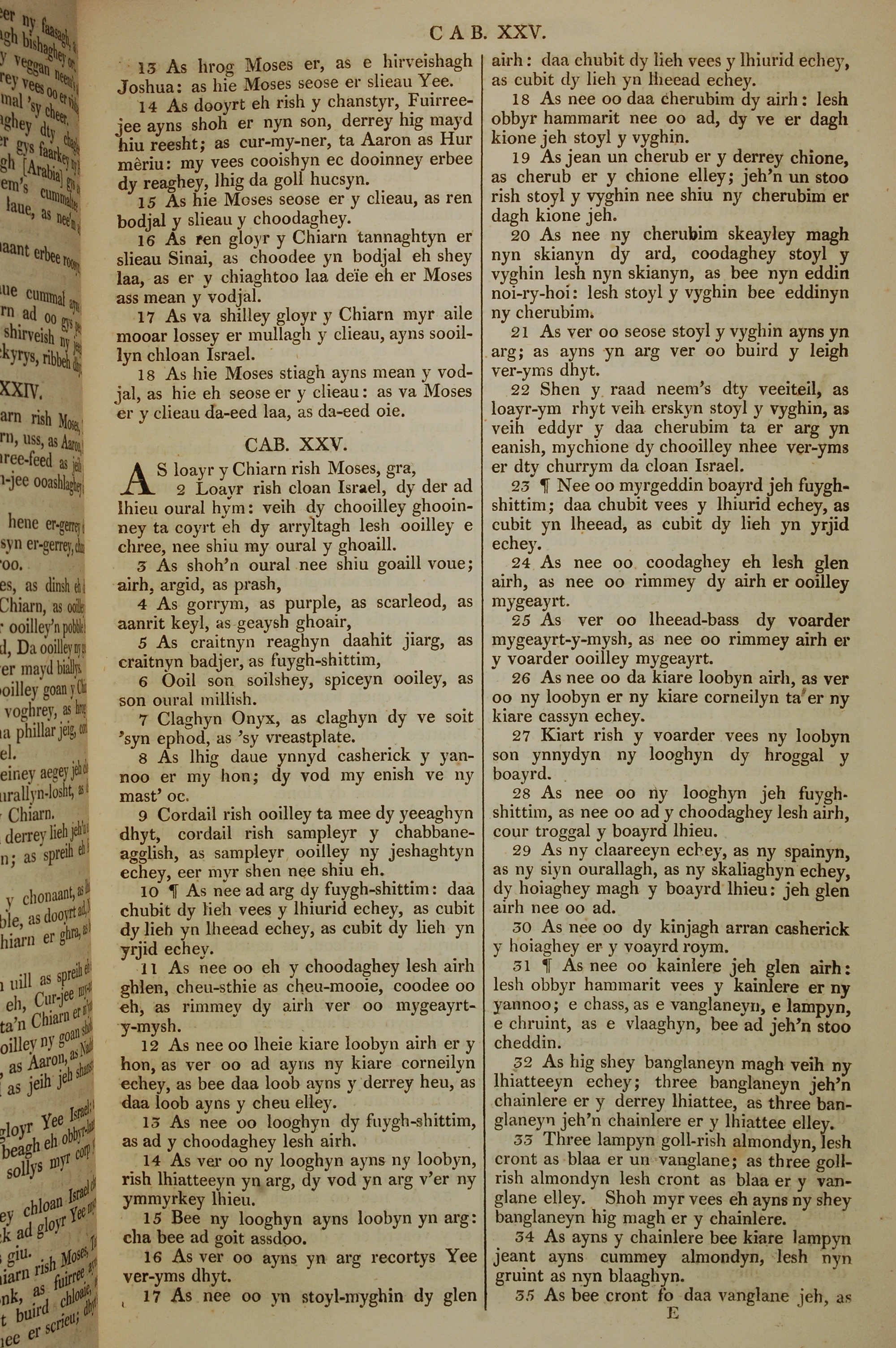 1819年曼岛语圣经 出埃及记 24 章 13 节到 25 章 35 节