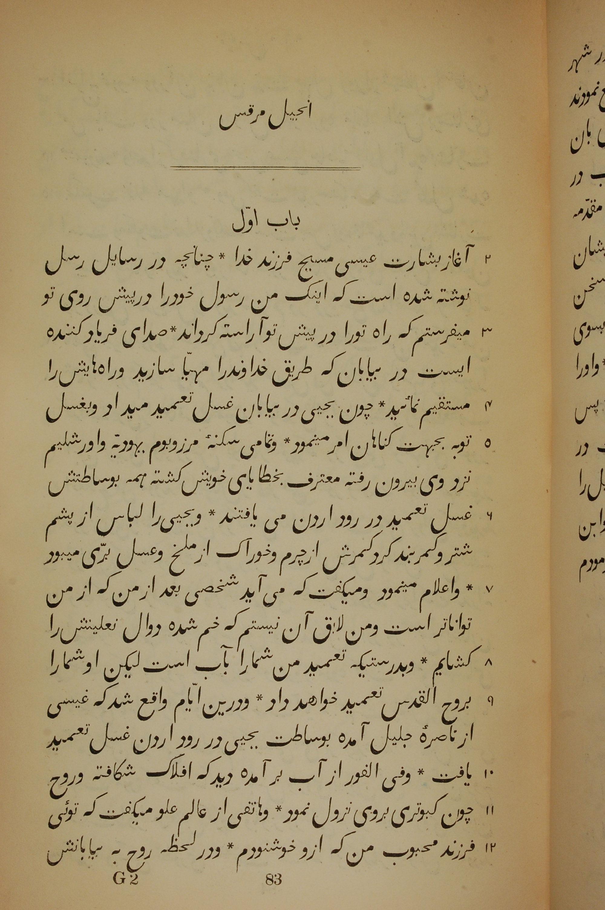 1837年New Testament Translated From the Original Greek into Persian 马可福音 1 章 1 节到 1 章 12 节