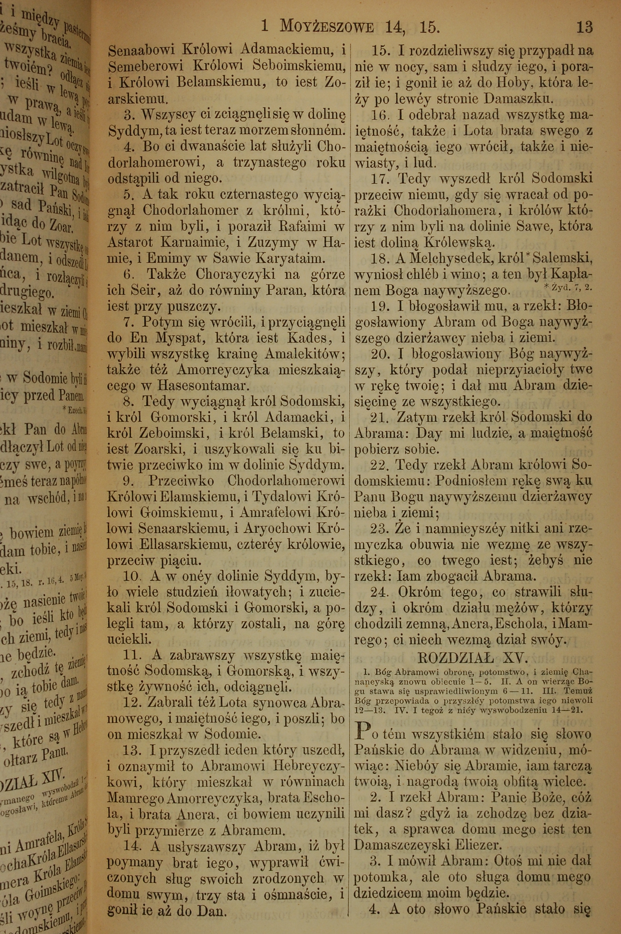 1857年波兰文新旧约全书 创世记 14 章 3 节到 15 章 4 节