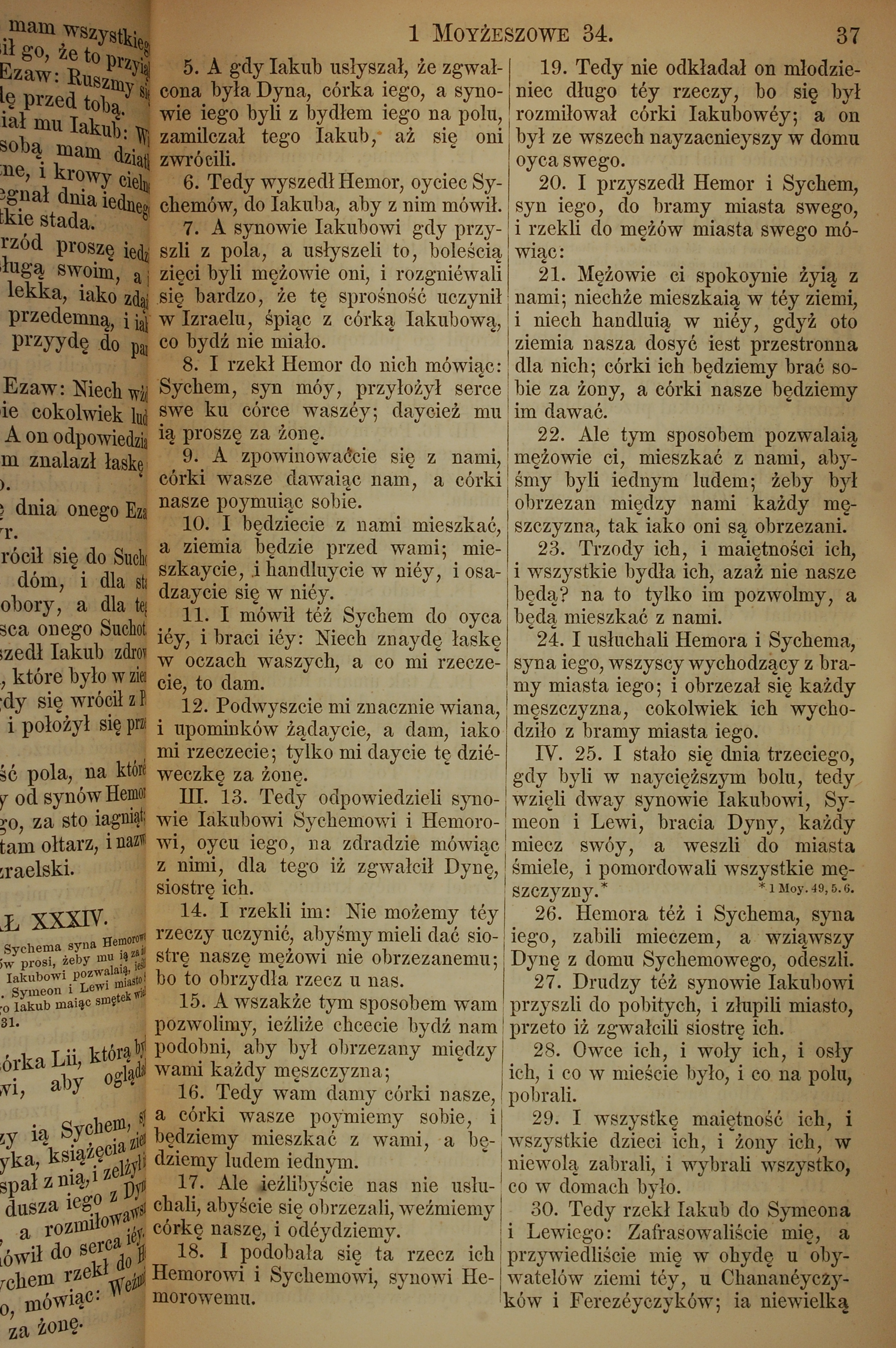 1857年波兰文新旧约全书 创世记 34 章 5 节到 34 章 30 节