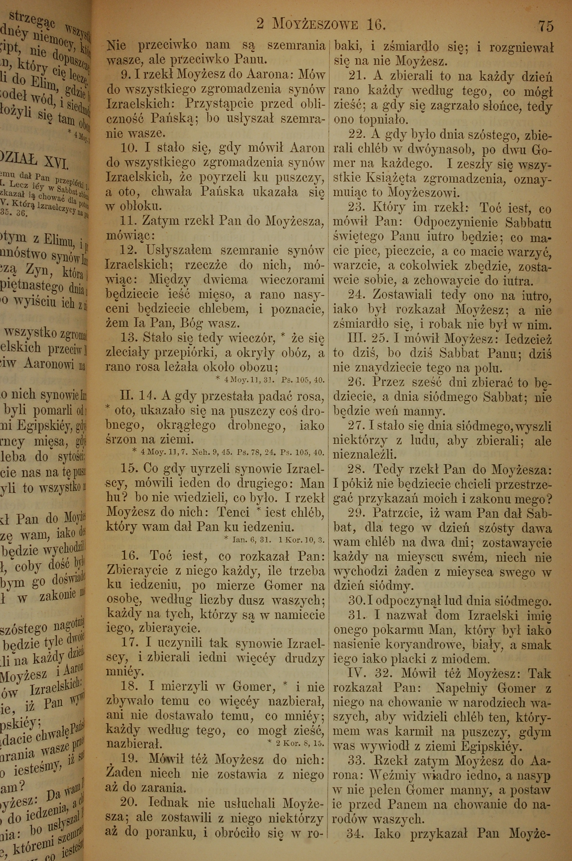 1857年波兰文新旧约全书 出埃及记 16 章 9 节到 16 章 34 节