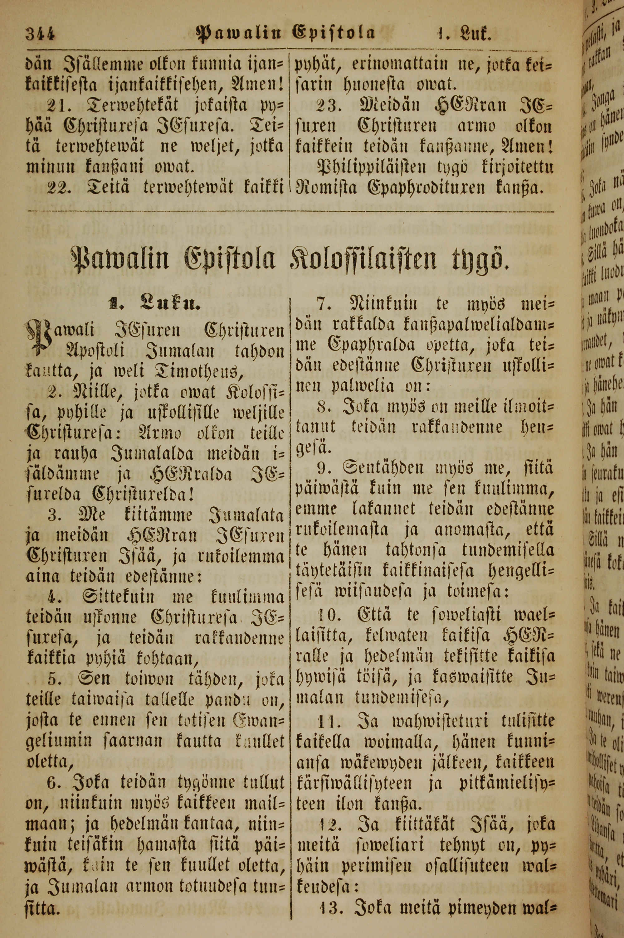 1861年新约全书 歌罗西书 1 章 1 节到 1 章 13 节