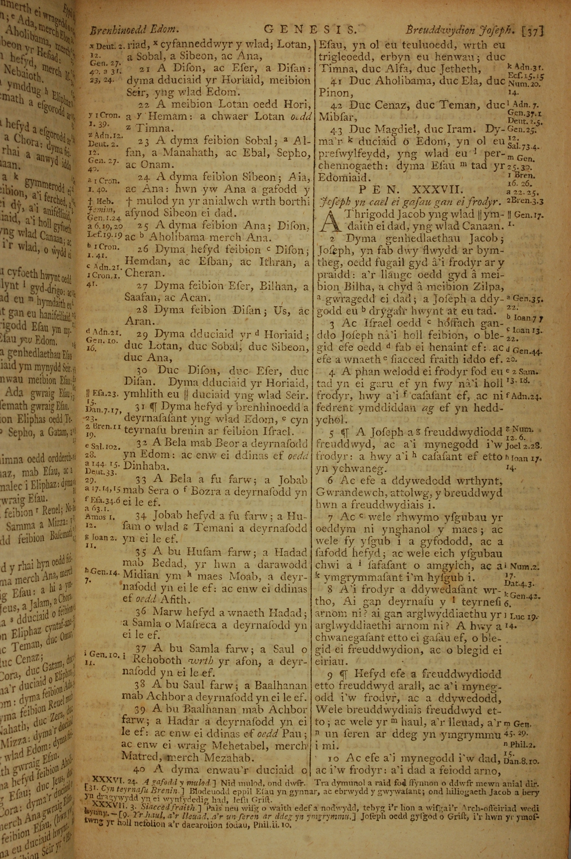 1796年威尔斯文新旧约全书 创世记 36 章 21 节到 37 章 10 节