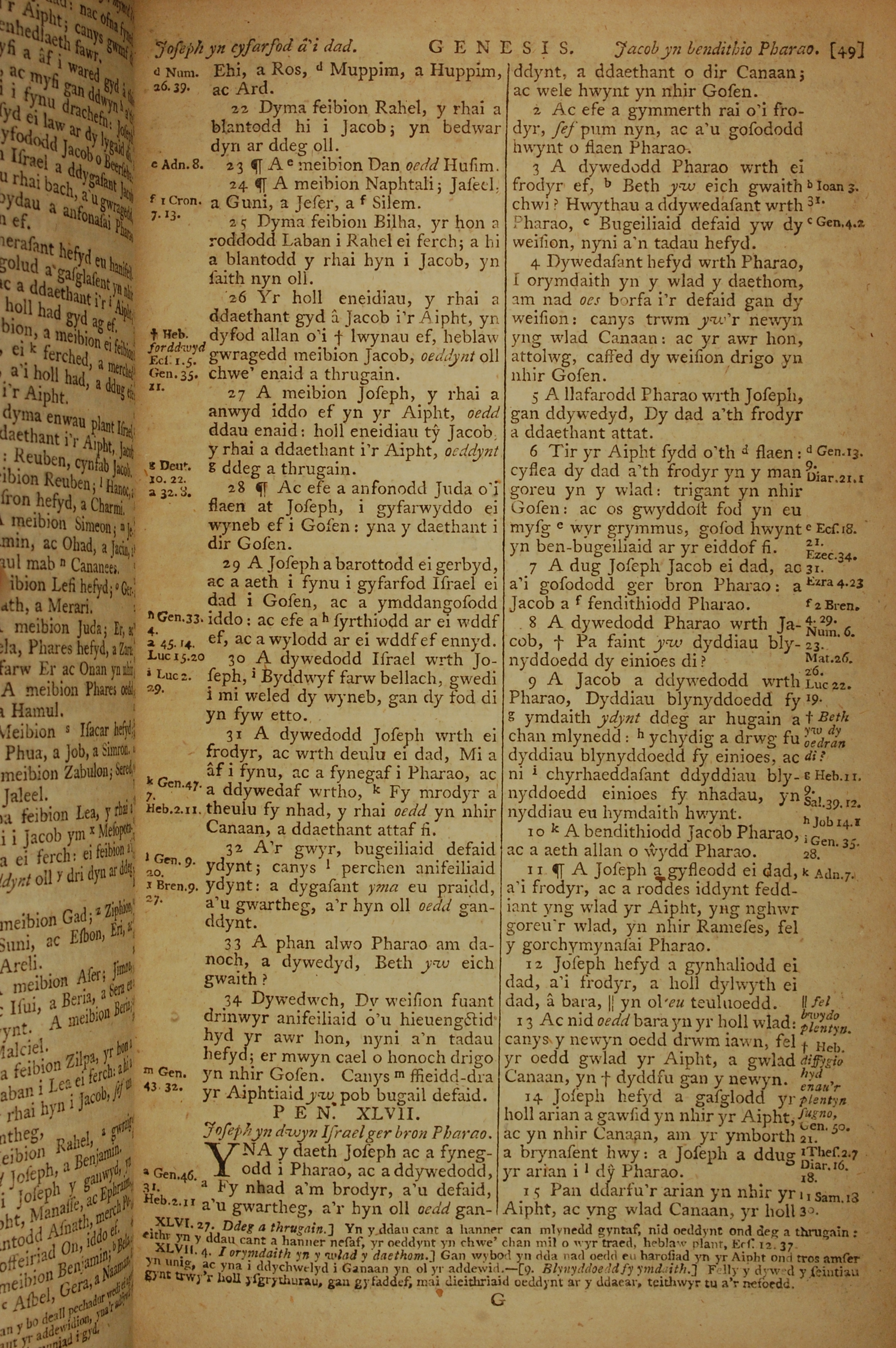 1796年威尔斯文新旧约全书 创世记 46 章 22 节到 47 章 15 节
