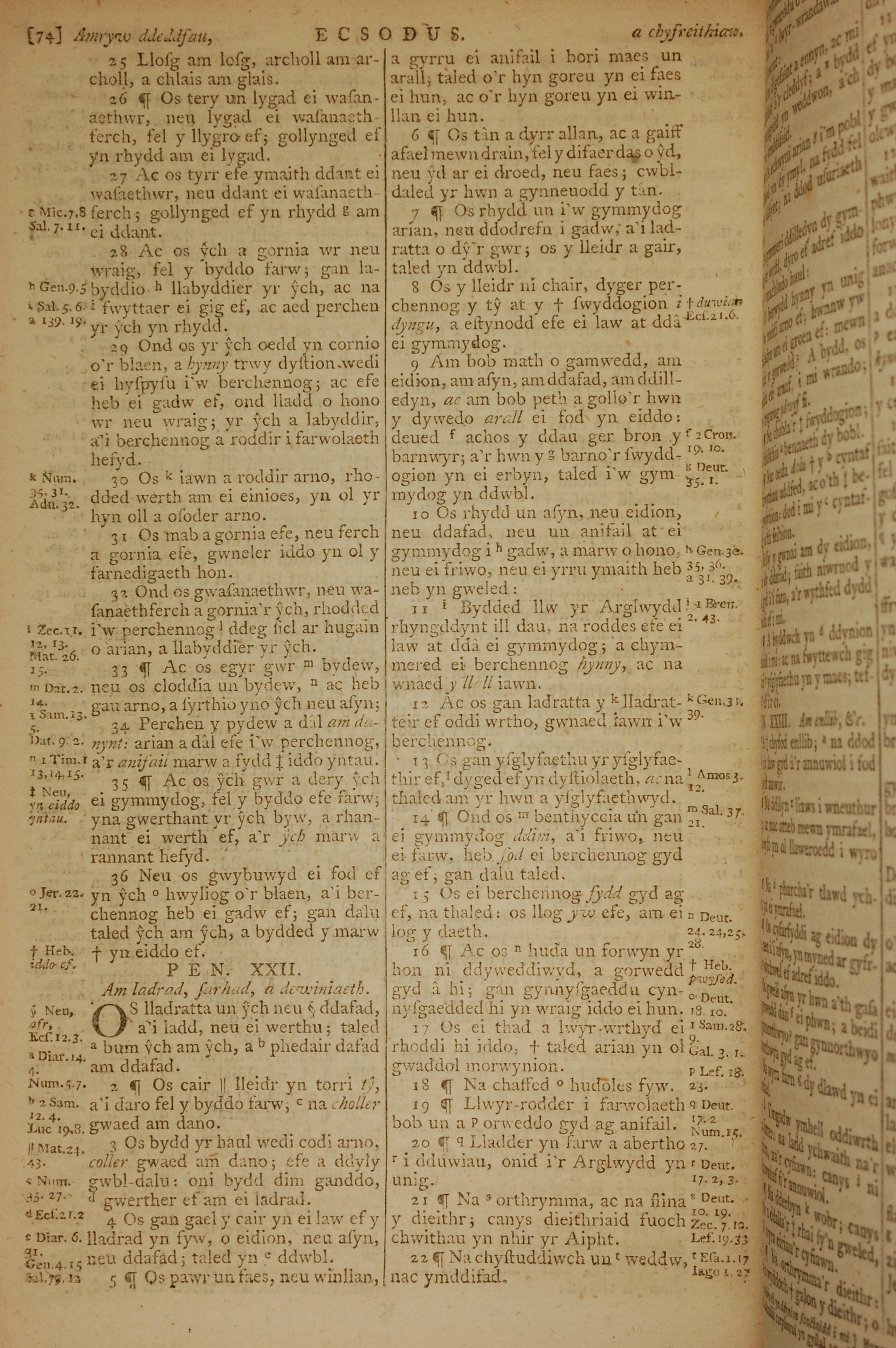 1796年威尔斯文新旧约全书 出埃及记 21 章 25 节到 22 章 22 节