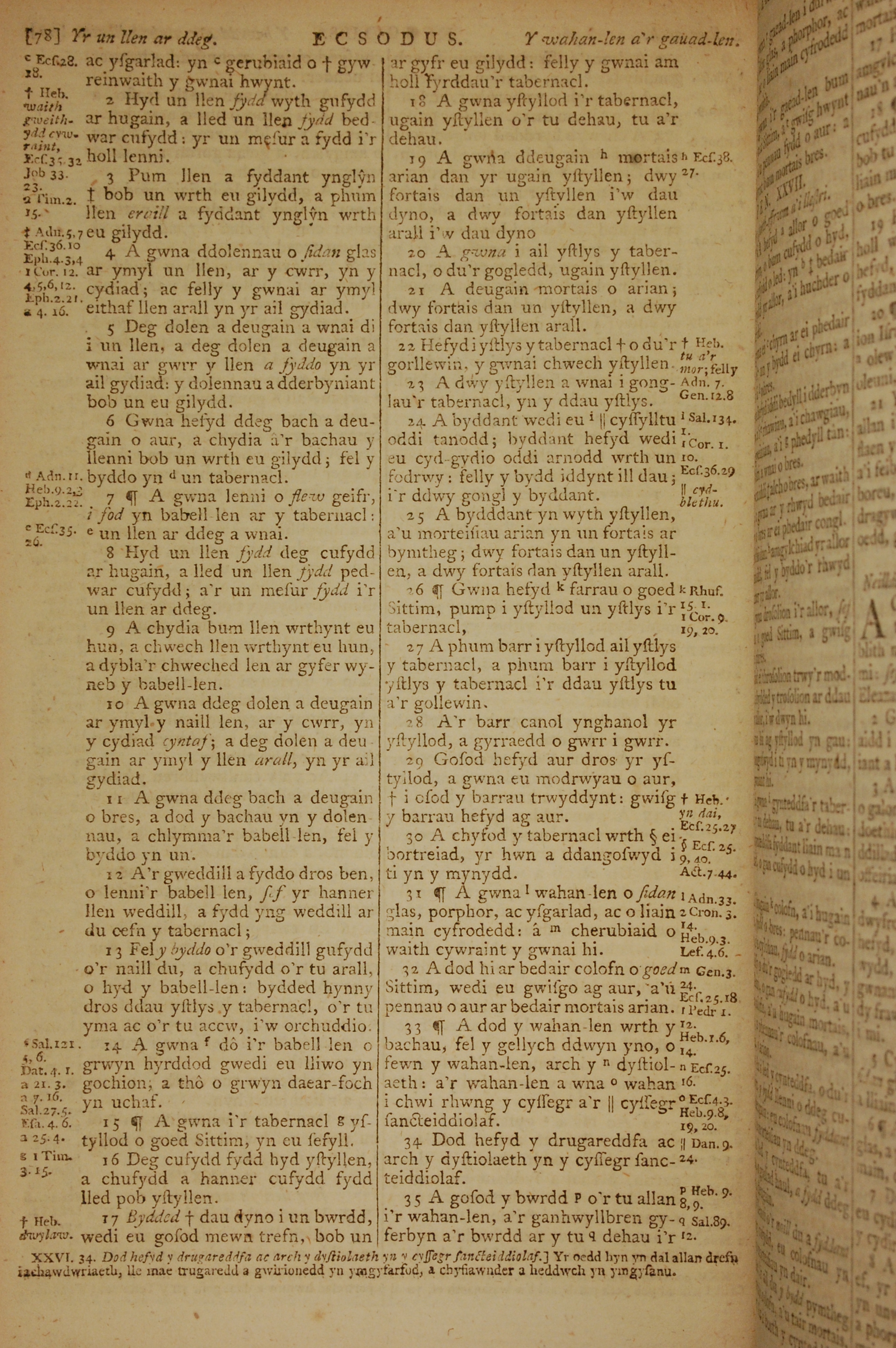 1796年威尔斯文新旧约全书 出埃及记 26 章 2 节到 26 章 35 节
