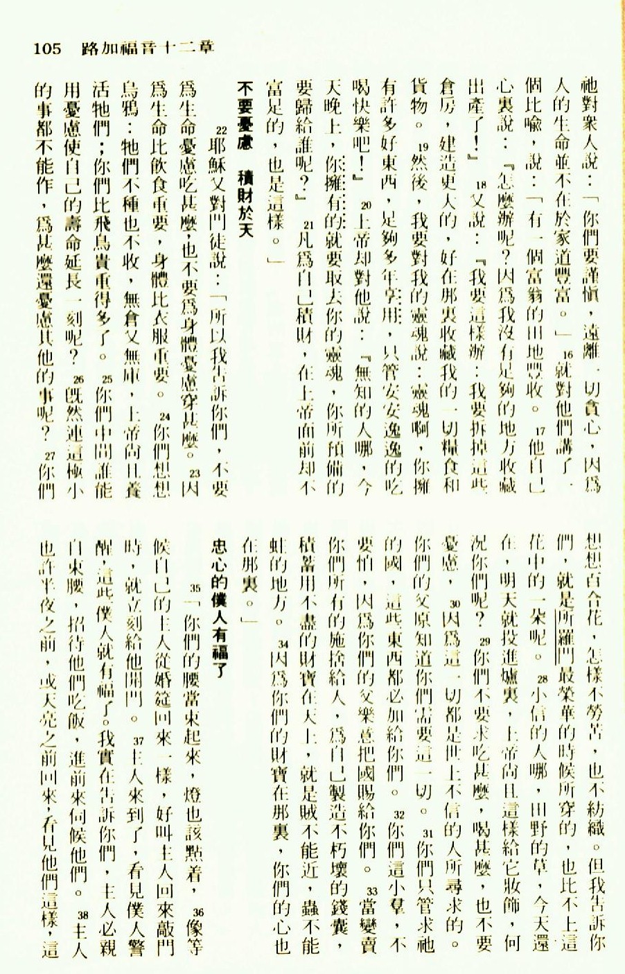 1976年圣经新译本新约 路加福音 12 章 16 节到 12 章 38 节