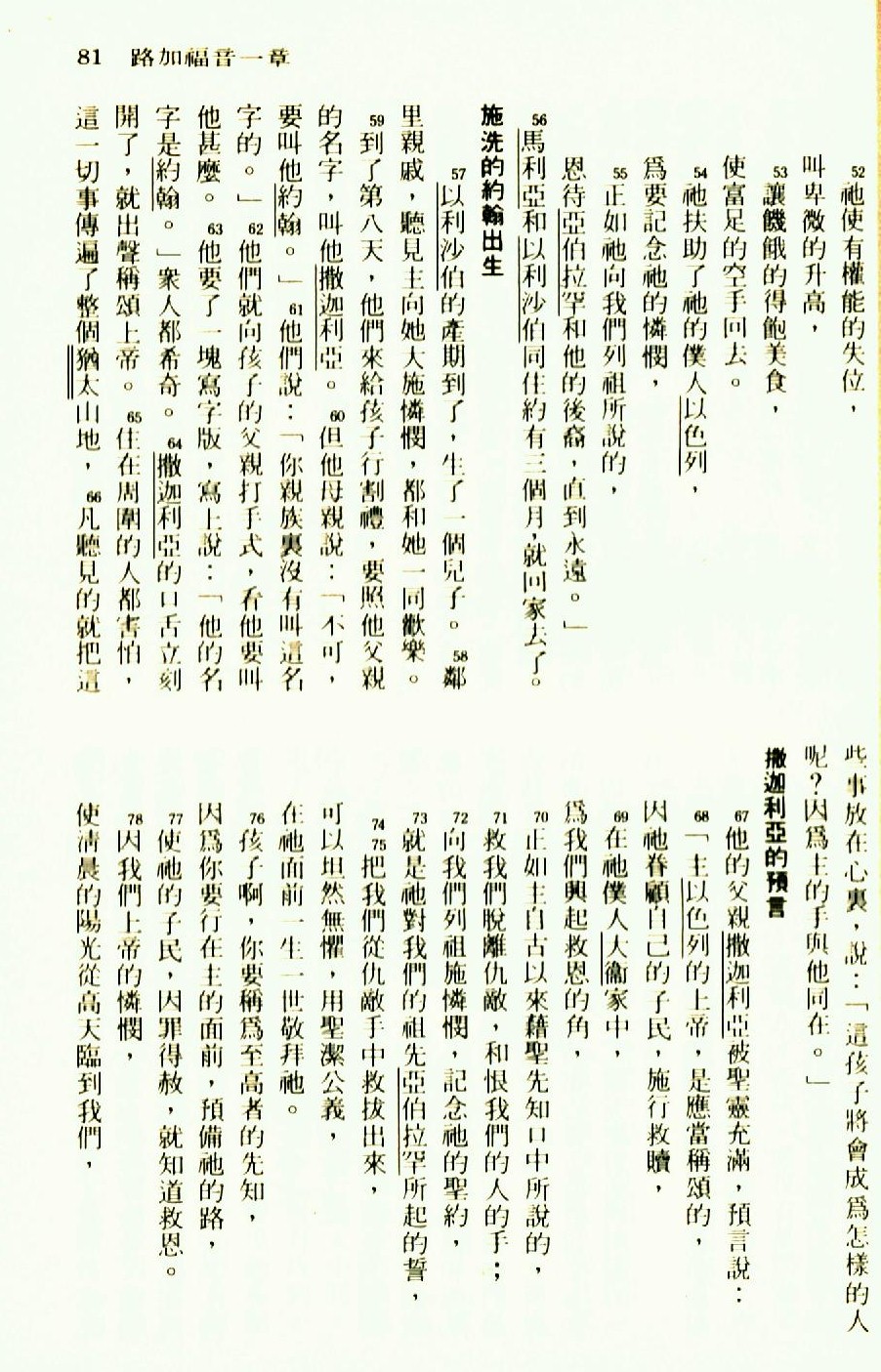 1976年圣经新译本新约 路加福音 1 章 52 节到 1 章 78 节
