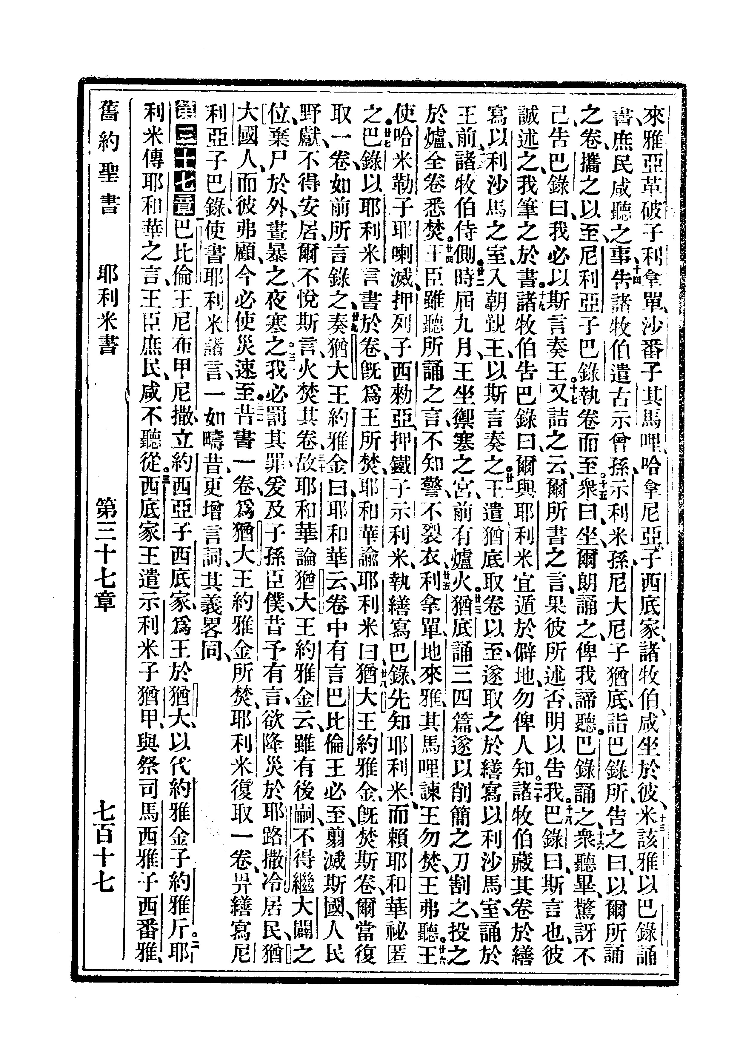 1910年委办译本 耶利米书 36 章 13 节到 37 章 3 节