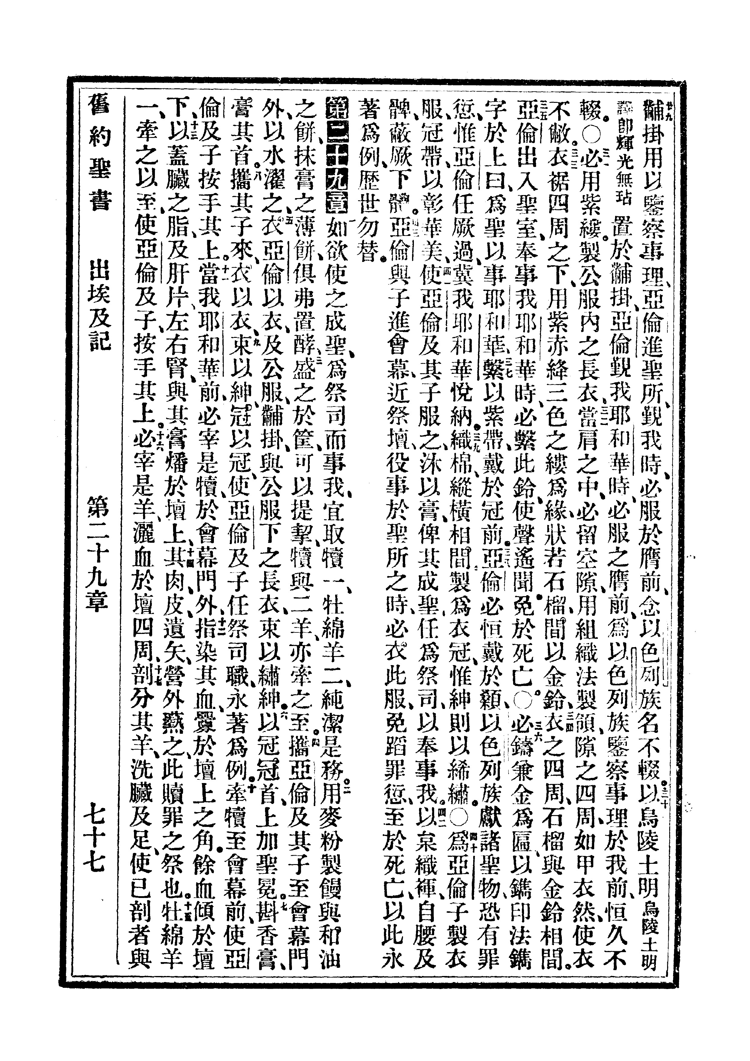 1910年委办译本 出埃及记 28 章 29 节到 29 章 17 节