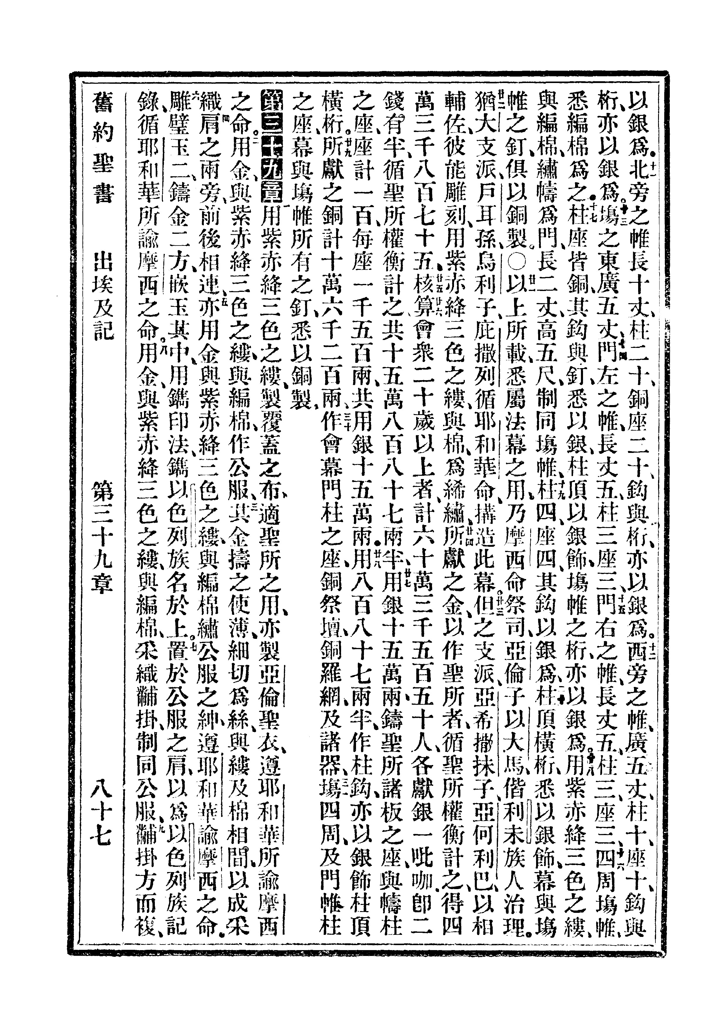 1910年委办译本 出埃及记 38 章 11 节到 39 章 9 节