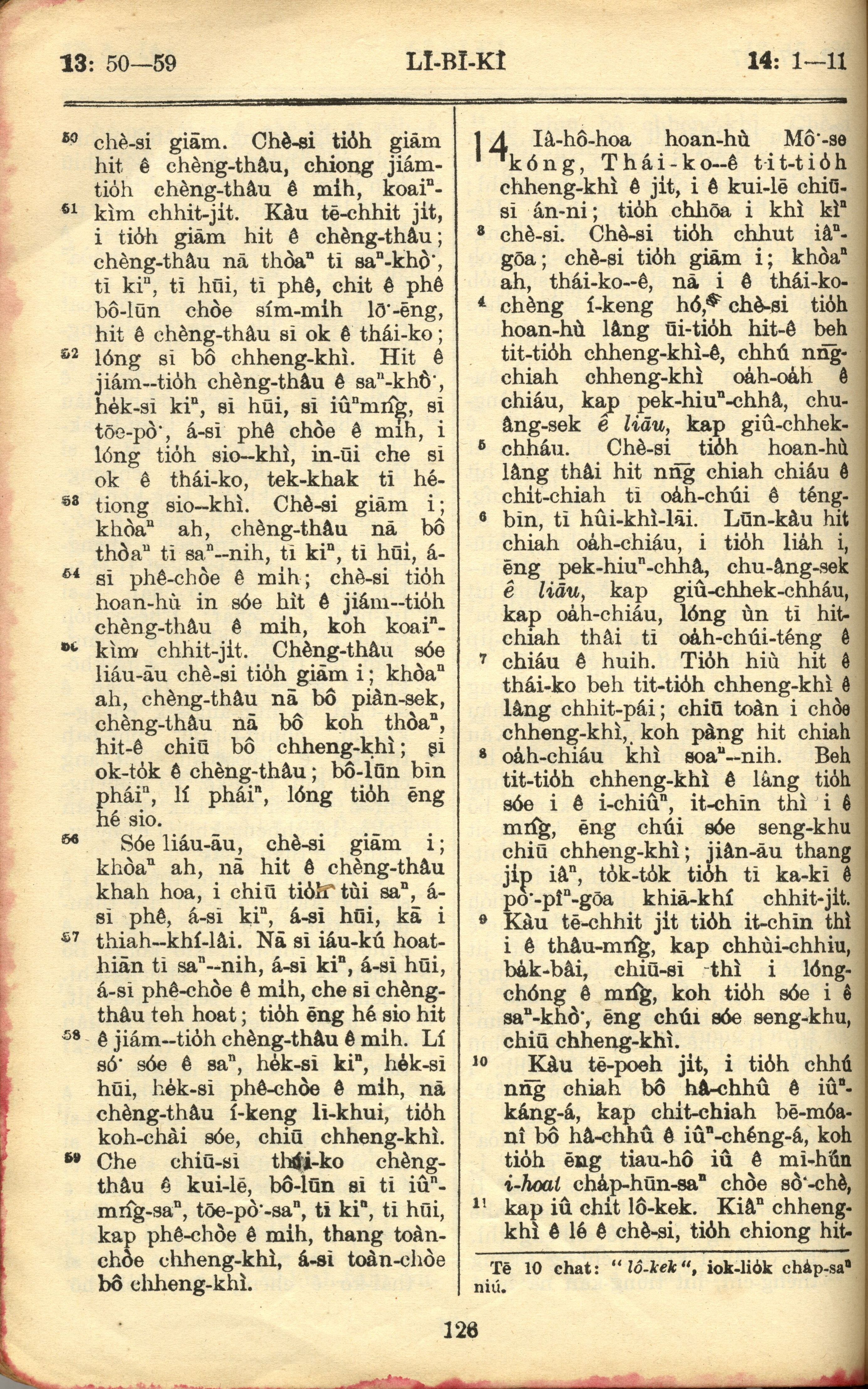 1957年巴克礼全罗台语圣经串珠版 利未记 13 章 50 节到 14 章 11 节