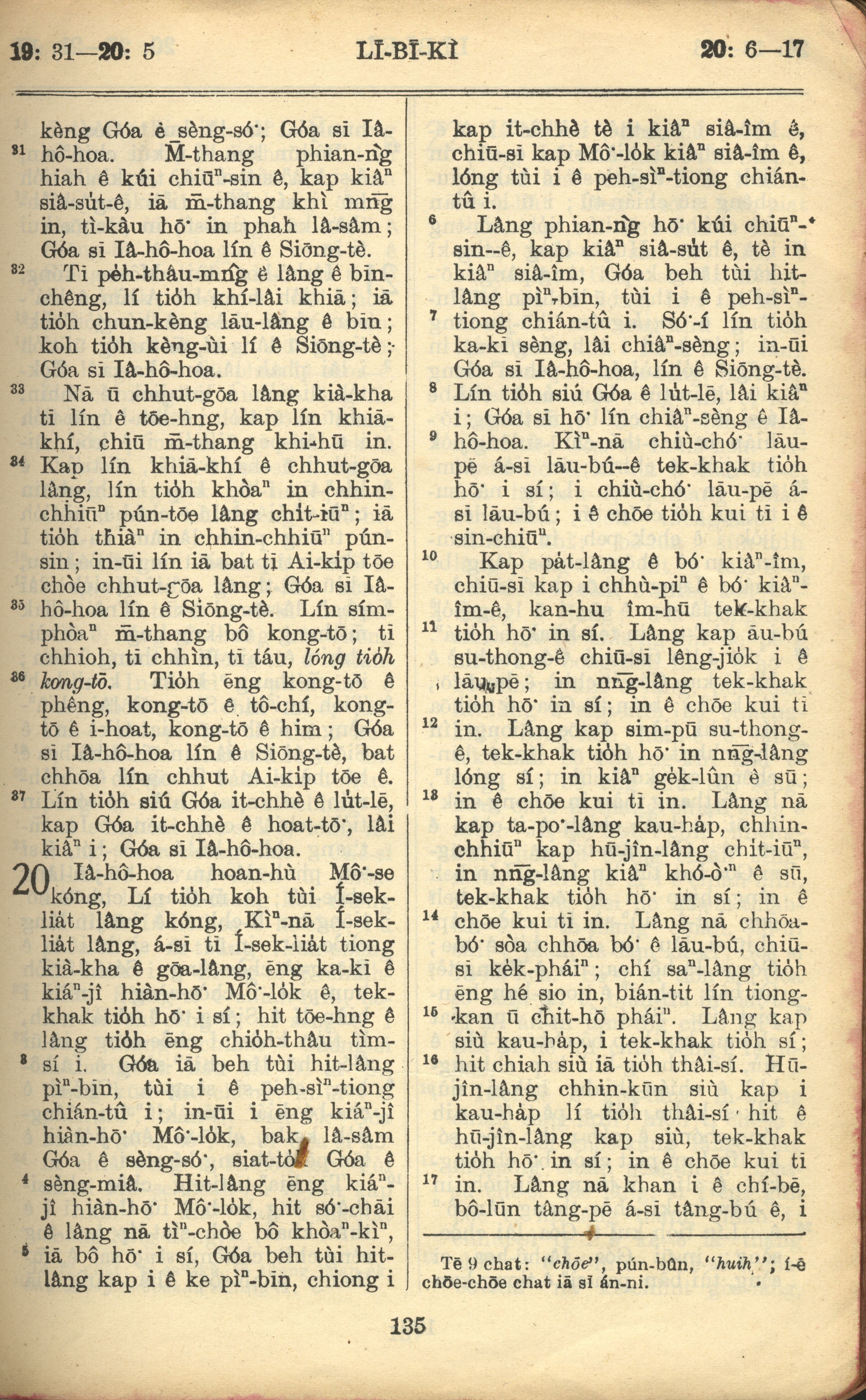 1957年巴克礼全罗台语圣经串珠版 利未记 19 章 31 节到 20 章 17 节