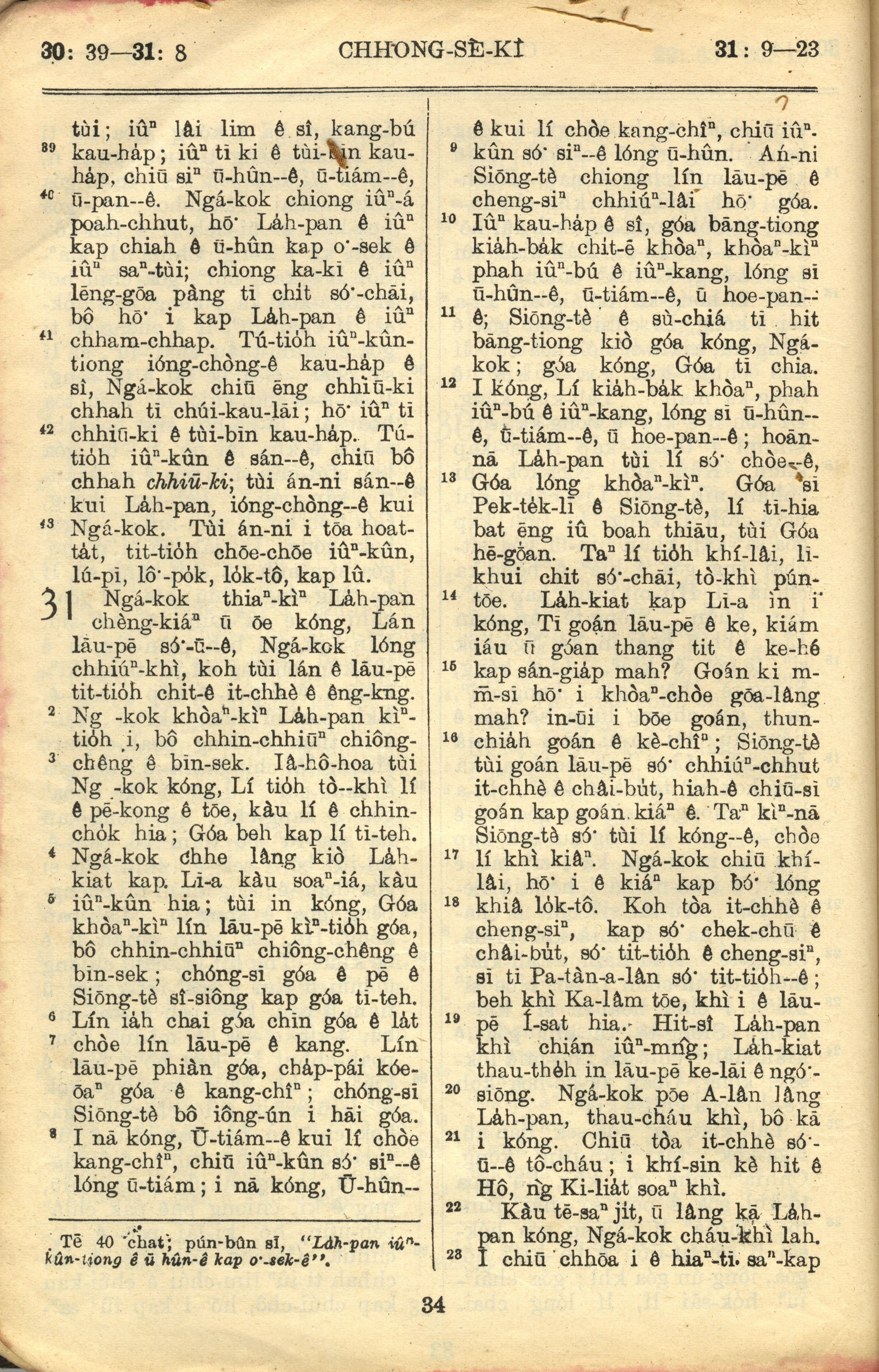 1957年巴克礼全罗台语圣经串珠版 创世记 30 章 39 节到 31 章 23 节