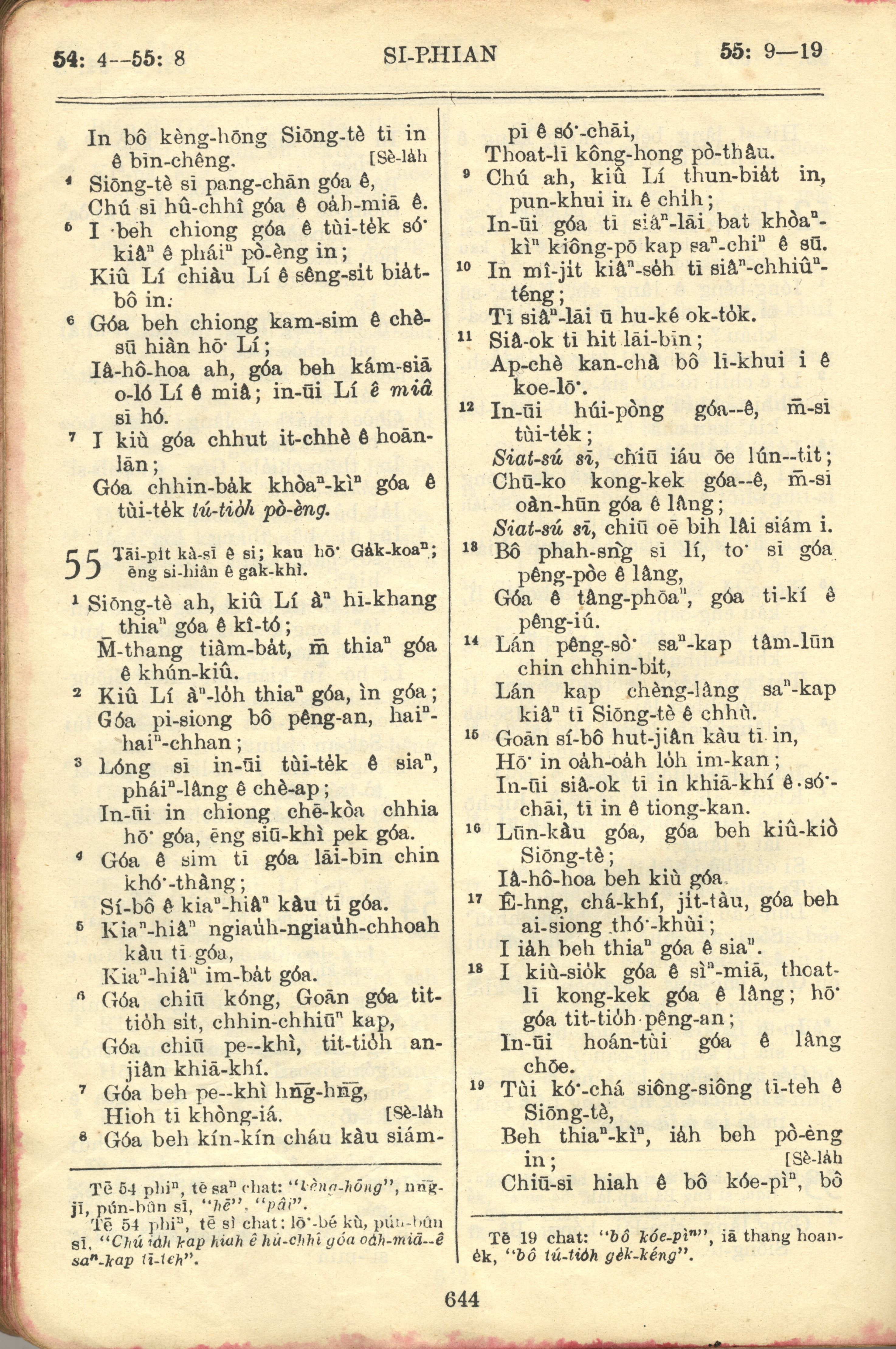 1957年巴克礼全罗台语圣经串珠版 诗篇 54 章 4 节到 55 章 19 节