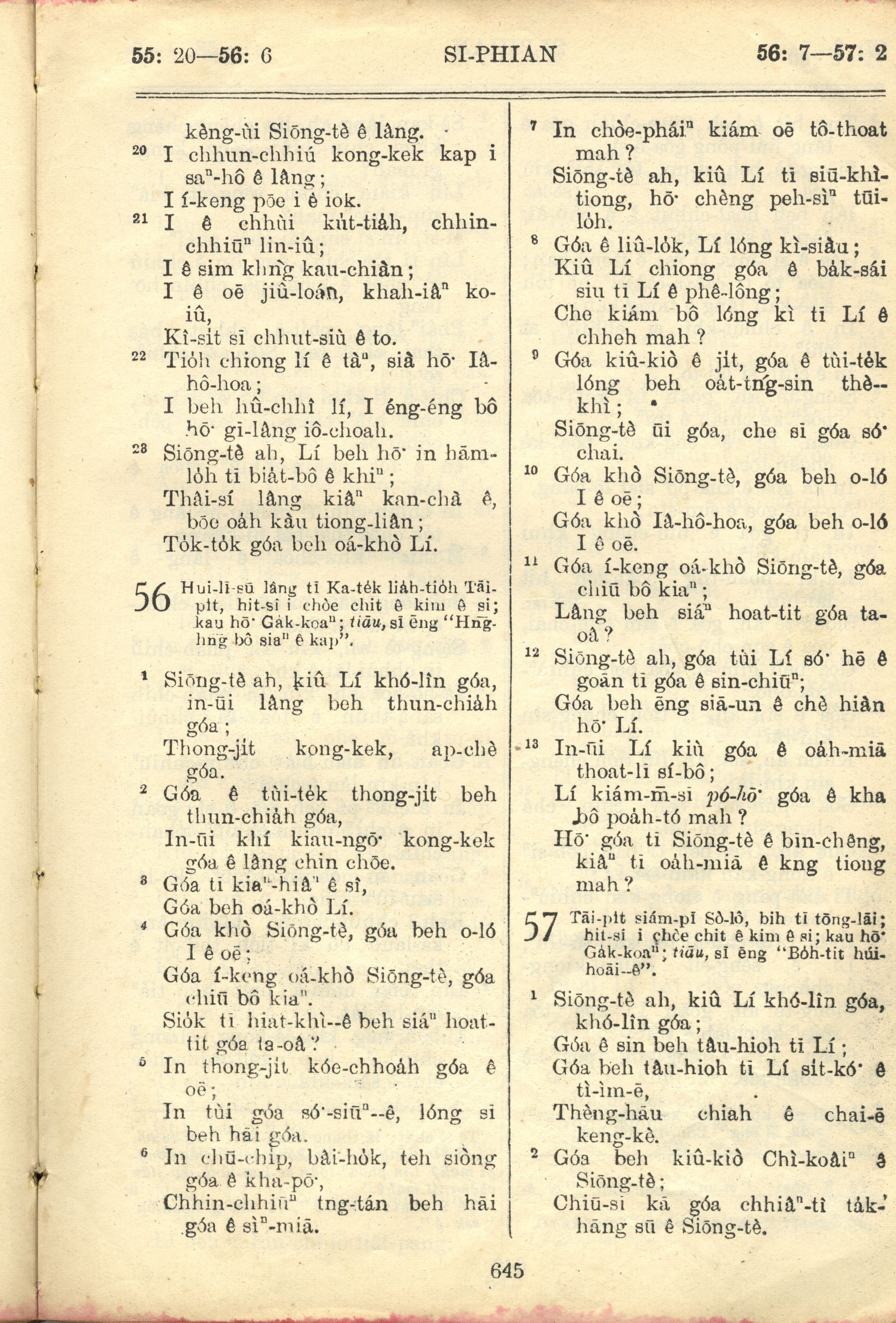 1957年巴克礼全罗台语圣经串珠版 诗篇 55 章 20 节到 57 章 2 节