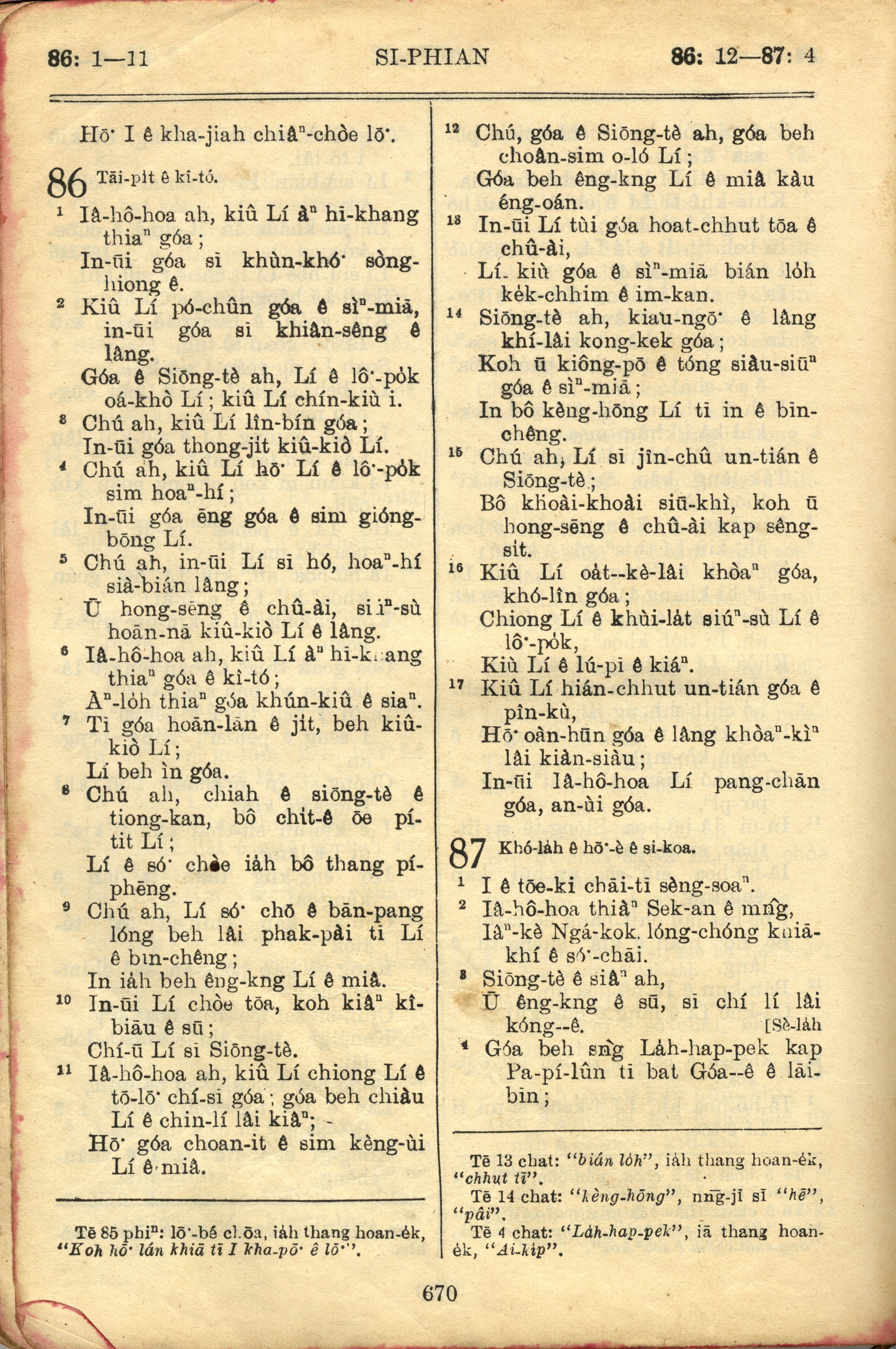 1957年巴克礼全罗台语圣经串珠版 诗篇 86 章 1 节到 87 章 4 节