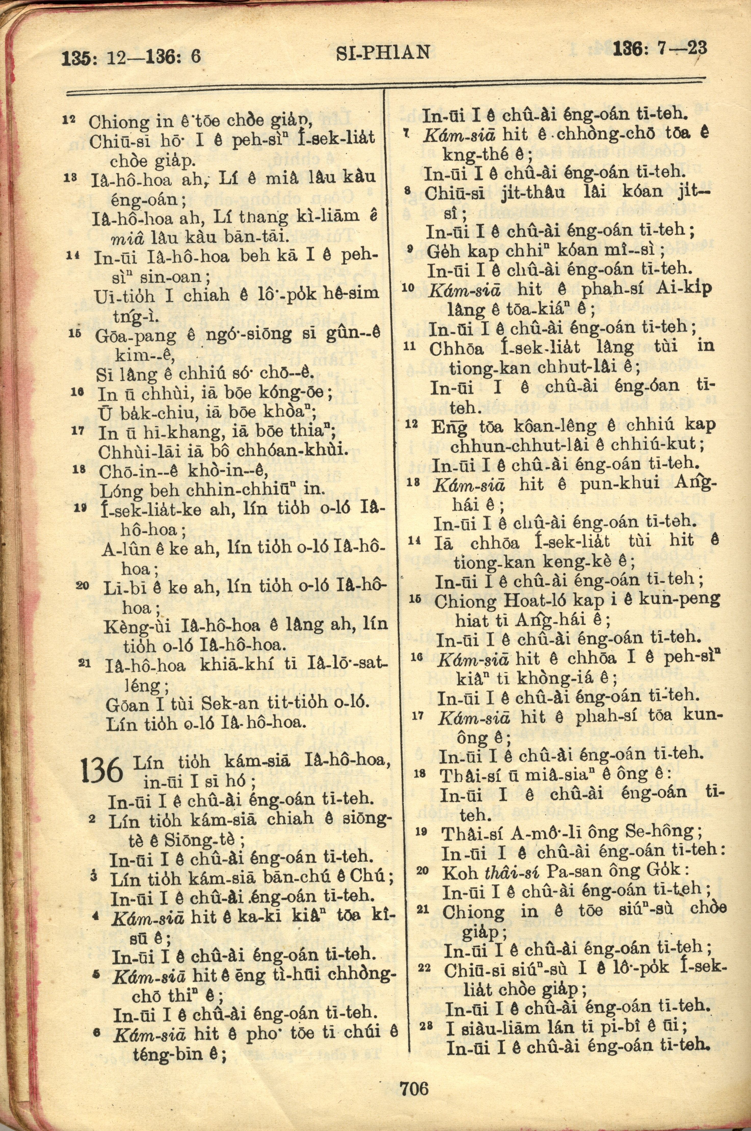 1957年巴克礼全罗台语圣经串珠版 诗篇 135 章 12 节到 136 章 23 节